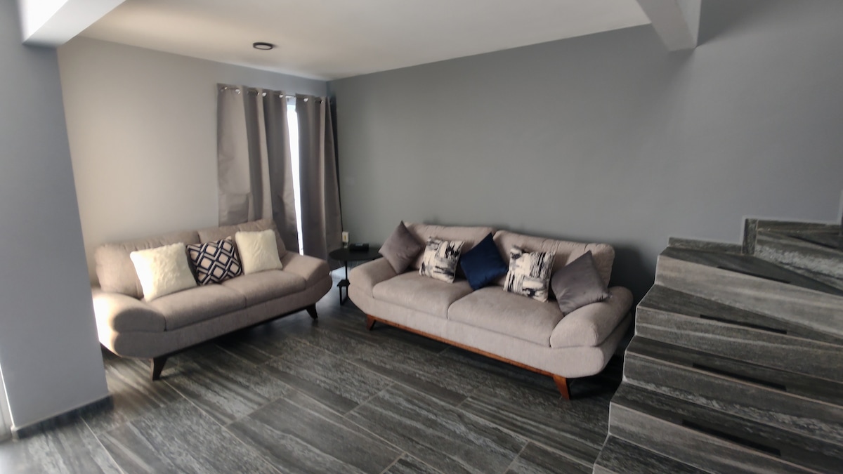 Tá leaba bhanríona ag Depa de Mara le Casa de Mara & Donna, Árasán urláir na talún do dhuine amháin nó 2 dhuine, do bheirt! Tá cistin lánfheistithe, seomra suí, seomra folctha iomlán, cúlchlós le seacláid, garáiste le geata leictreach ann! Tá suíomh an Depa de Mara an - phribhléideach ós rud é go bhfuil sé díreach os comhair Staid Lastras, níos lú ná nóiméad rochtana ar Av. Industrias agus rochtain chomh gar céanna do Blv. Río Españita, níos lú ná 5 nóiméad ó Plaza Soriana el Paseo, 5 nóiméad ón Ionad