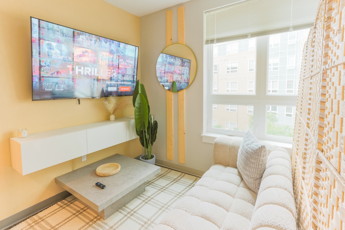 Tá stíl agus draíocht ag an áit uathúil seo - árasán 1 sheomra leapa galánta le síleálacha arda, dearadh tuisceanach, laistigh d'achar siúil de Chearnóg Davis, cearnóg Porter, Stáisiún Alewife (meitreo T) agus rochtain éasca ar Harvard, MIT, BU, Tufts, lár na cathrach Bostúin. Tá fearais lánmhéide, cuntair eibhir, agus gach rud a theastaíonn uait sa chistin oscailte. Tá leaba bhanríona chompordach, línéadach tí bog agus pailéad dathanna suaimhneach suaimhneach sa seomra leapa — foirfe chun do scíth a ligean tar éis lá ag iniúchadh na cathrach.
