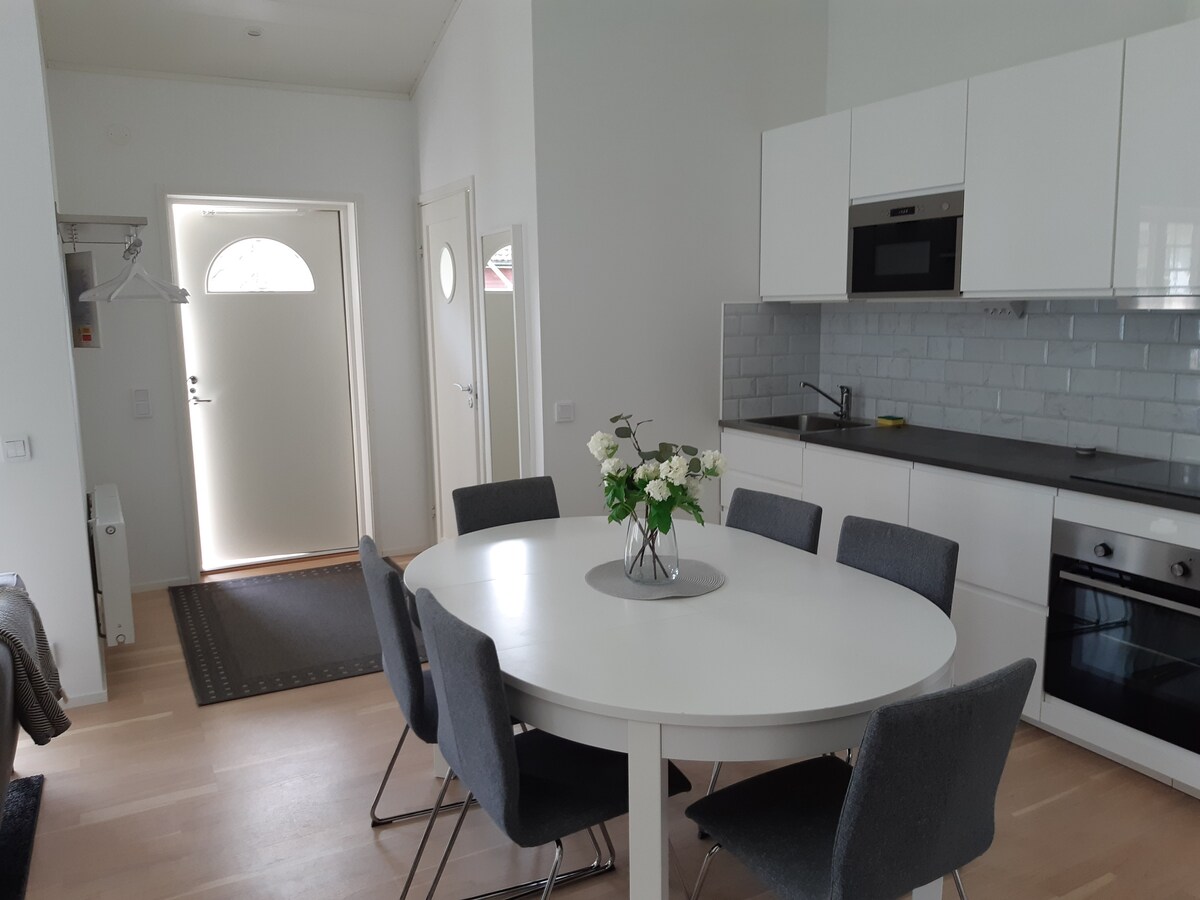 Teachín lárnach, athchóirithe & lánfheistithe in Färjestaden! Suite 3 nóiméad siúil go dtí stad an bhus "Snäckstrand ó dheas" áit ar féidir leat dul ó dheas ar Öland agus isteach go Kalmar go héasca. Fad siúil go Färjestaden le siopaí & bialanna. Go sráid shráidbhaile Eriksöre tá sé 7km & go Ekerum 18km! PATIO féin le háiseanna beárbaiciú chomh maith le spás páirceála saor in aisce díreach taobh amuigh den teachín.
