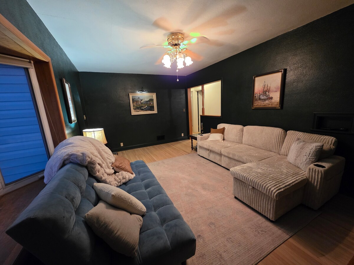 Fáilte go Blue Tin Ranch, ionad imeachtaí ina bhfuil spásanna uathúla! Meastar go bhfuil an coop sicín ag glampáil. Agus an liostú seo á chur in áirithe agat, caithfear leat ar ár gcopán sicín athchóirithe. Rinneadh an coop a thráiliú ó fheirm ár seanathair, agus athraíodh go cistin Airbnb/samhraidh é! Beidh dhá sheomra leapa, áit suí agus cistinéad ar fad agat duit féin. Níl seomraí folctha comhroinnte ach siúlóid ghearr ar shiúl. Croch amach sa choop nó déan iniúchadh ar an réadmhaoin go léir atá le tairiscint! Níl sicíní san áireamh
