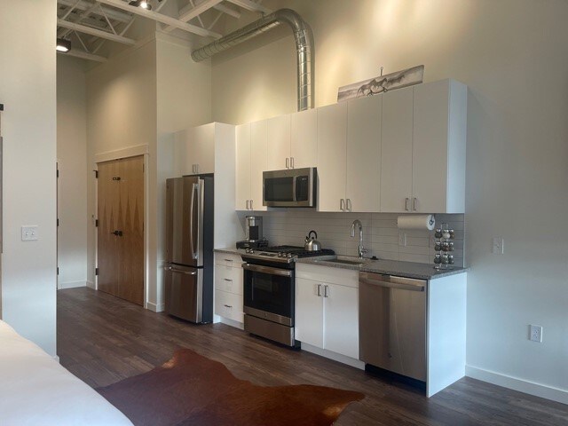 Bain sult as sofaisticiúlacht nua - aimseartha sa bhloc árasán galánta seo nach bhfuil ach bloc amháin ón bPríomhshráid i Downtown Bozeman agus tá sé ar fáil. Idir bhialanna iontacha agus shiopadóireacht agus gach gníomhaíocht lasmuigh, tá rud éigin ann do gach duine! Is é ár gcuspóir eispéireas maireachtála dodhearmadta a chur ar fáil duit agus tú ar saoire. Cuirimid an áit fhoirfe ar fáil sa bhaile le linn d'fhanachta ag Loft503, atá suite ag trasnú Mendenhall & Church Ave i gcroílár Historic Downtown Bozeman. STR23 -00004