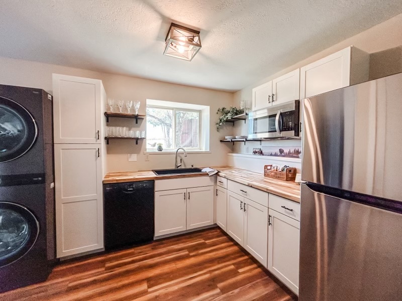 - Lóistíní ar cíos ina bhfuil meaisín níocháin agus triomadóir Bozeman