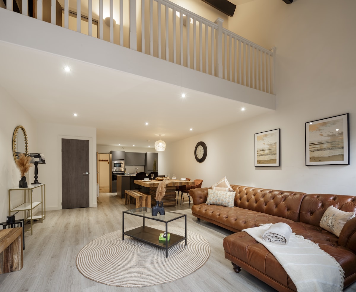 Árasán nua - aimseartha le balcóin i lár bhaile Urmston