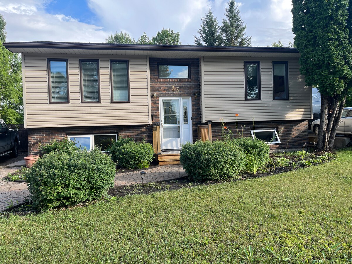 Bain sult as fanacht le do theaghlach ar fad sa teach seo ina bhfuil 3 sheomra leapa, 1 seomra folctha agus cistin (comhroinnte ach gan mórán úsáide) ar bhunurlár an tí. Tá teilifís i ngach seomra leapa agus tá rochtain láithreach ar sheirbhísí sruthaithe amhail Netflix, Disney+, Crave agus Prime video. Cistin uathúil ina bhfuil raidhse fearas do riachtanais aon chócaire. Tá idirlíon ardluais, stáisiún caife/tae, iarann, galóir agus triomadóir gruaige ar chuid de na saoráidí iomadúla. Tá úsáid an mheaisín níocháin agus an triomadóra ar fáil más gá.