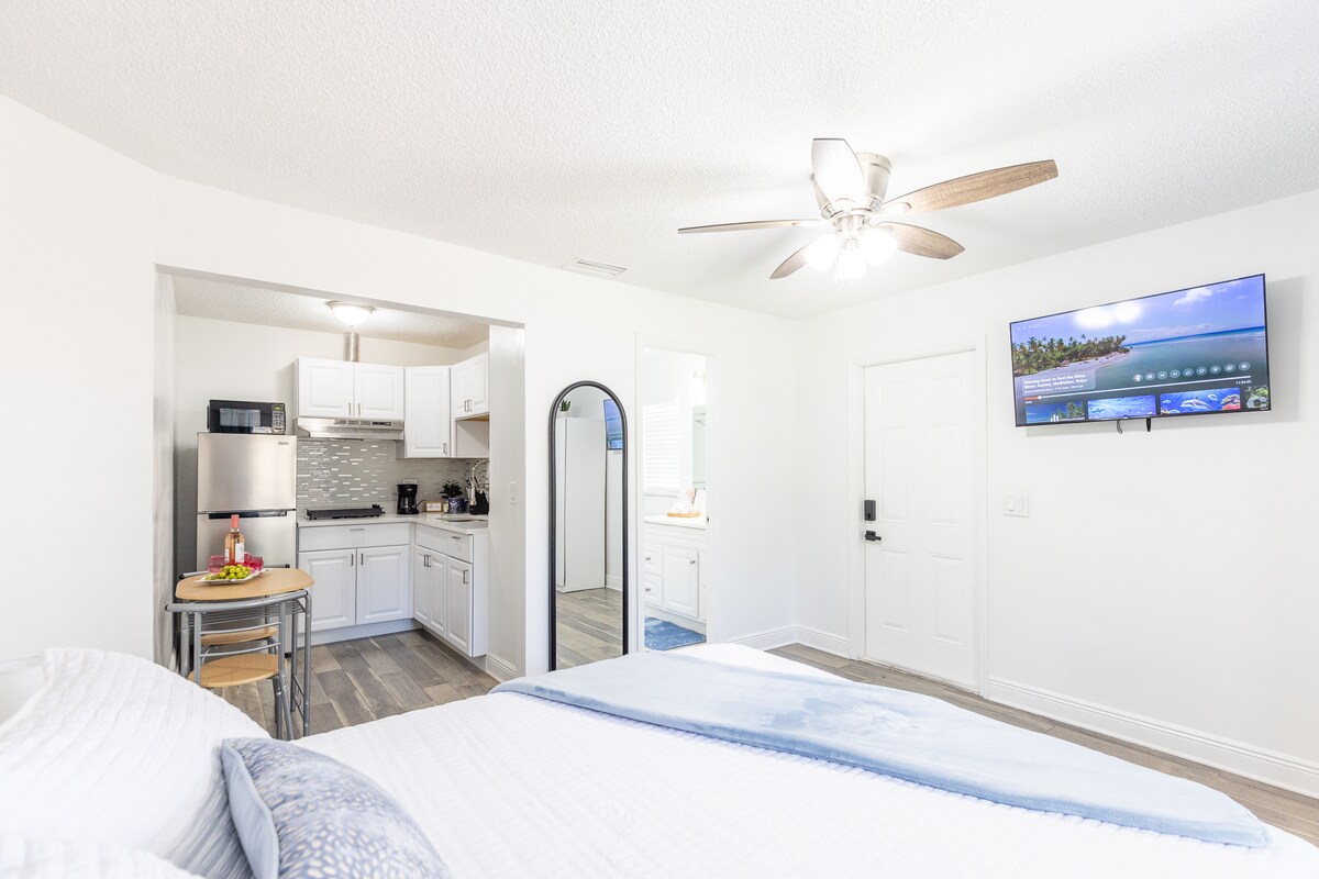 Fáilte go dtí do cheilt shuaimhneach i bPáirc Citrus, áit a mbuaileann compord nua - aimseartha le dearadh tuisceanach. Níl sé ach 11 nóiméad ó Aerfort Idirnáisiúnta Tampa, agus tá páirceáil saor in aisce ar an áitreabh. Is áit fhoirfe é an stiúideo galánta príobháideach seo do lánúineacha, do thaistealaithe aonair, nó d'aíonna gnó atá ag lorg fanacht suaimhneach athnuaite. Lonnaithe i gcomharsanacht chiúin, shábháilte agus lárnach, bainfidh tú taitneamh as bealach isteach príobháideach, páirceáil saor in aisce ar an láthair, agus rochtain éasca ar bhialanna, ar shiopaí grósaera agus ar mhór - nithe is díol spéise do Tampa.