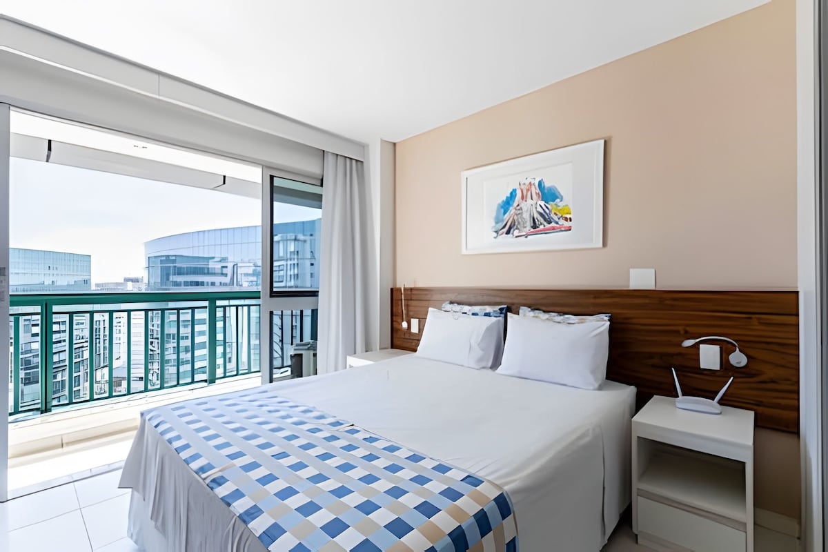 Hospede-se em um flat sofisticado, confortável e bem localizado, próximo a tudo o que você deseja visitar. Situado no Setor Hoteleiro Norte, no coração de Brasília, fica a poucos minutos dos principais pontos turísticos. O espaço é completo e aconchegante, com cama de casal, secador de cabelo, forno, ferro de passar, chaleira elétrica e outros itens pensados para garantir praticidade e bem-estar durante a sua estadia.
