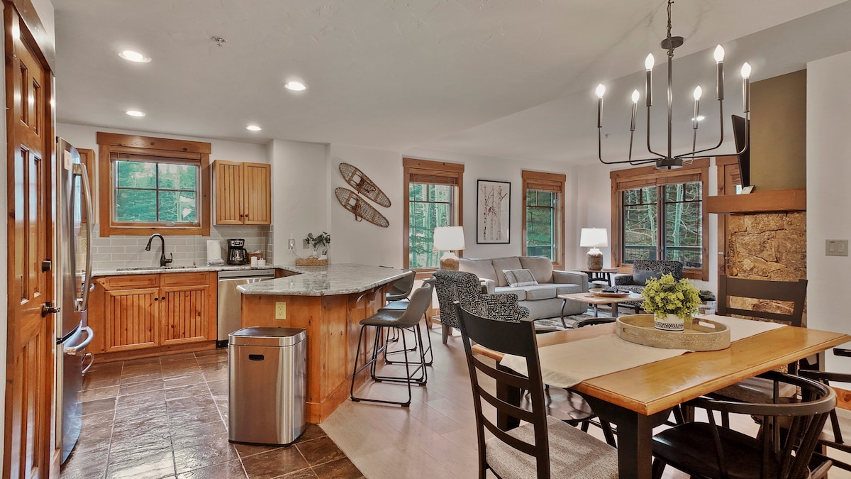 Fáilte chuig do bhrionglóid éalaithe sléibhe! Tá an díonteach sciáil ar áit na mbonn athmhúnlaithe seo ina chéimeanna ó ardaitheoir Quicksilver agus ón bPríomhshráid. Codlaíonn sé 10 leaba, 2 sheomra folctha, 2 bhalcóin, radhairc sléibhe, oíche nádúrtha fhlúirseach (agus cuirtíní dúghorma i ngach seomra). Bain sult as cistin iomlán, teallach dóite adhmaid, Wi - Fi tapa, teilifíseáin 4K, agus buntáistí an ionaid saoire: linn snámha théite, tobán te, seomra gaile, sabhna, giomnáisiam, seomra cluiche, deasc tosaigh/concierge, valet sciála agus go leor eile. Tá páirceáil sa gharáiste ar fáil ar tháille.