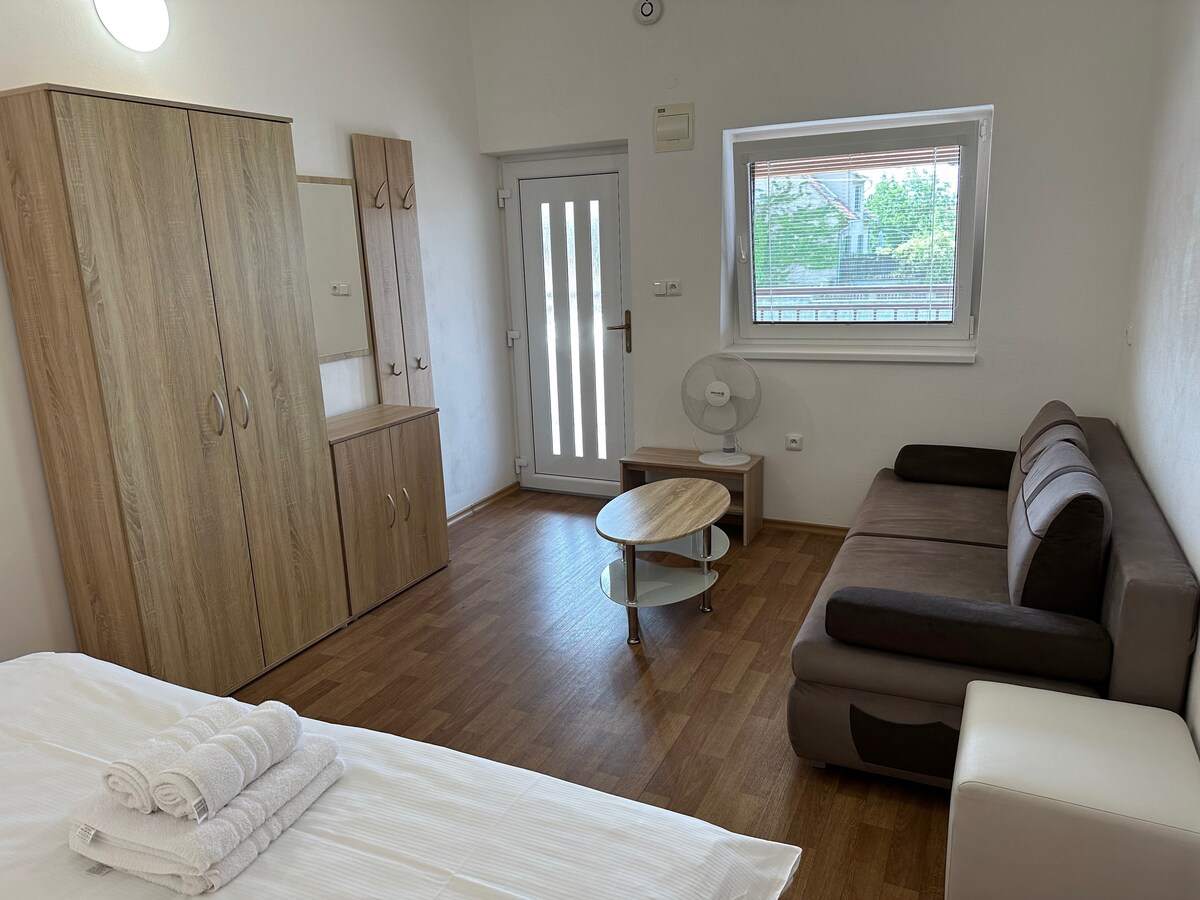 Malý apartmán s terasou a výhledem na Novomlýnské nádrže. Ložnice s dvoulůžkem, vybaveným kuchyňským koutkem, koupelnou. Možnost rozšíření o další pokojík s patrovou postelí pro další 2 hosty. K dispozici zahrada, gril, společenská místnost (houpačky, skluzavka, trampolína, fotbálek, šipky, hry, hračky i stolní hry