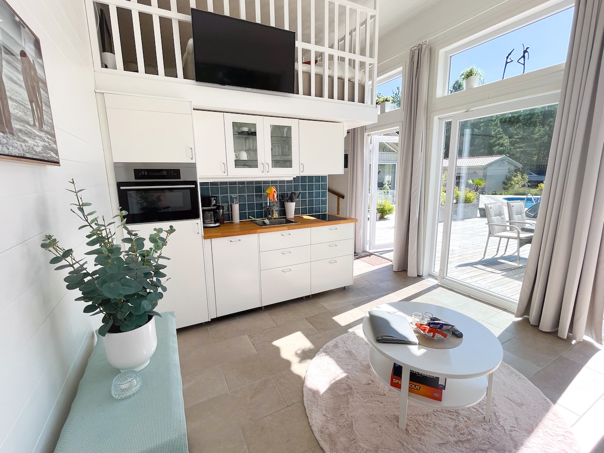 Árasán suite go lárnach in Borgholm le paitió príobháideach