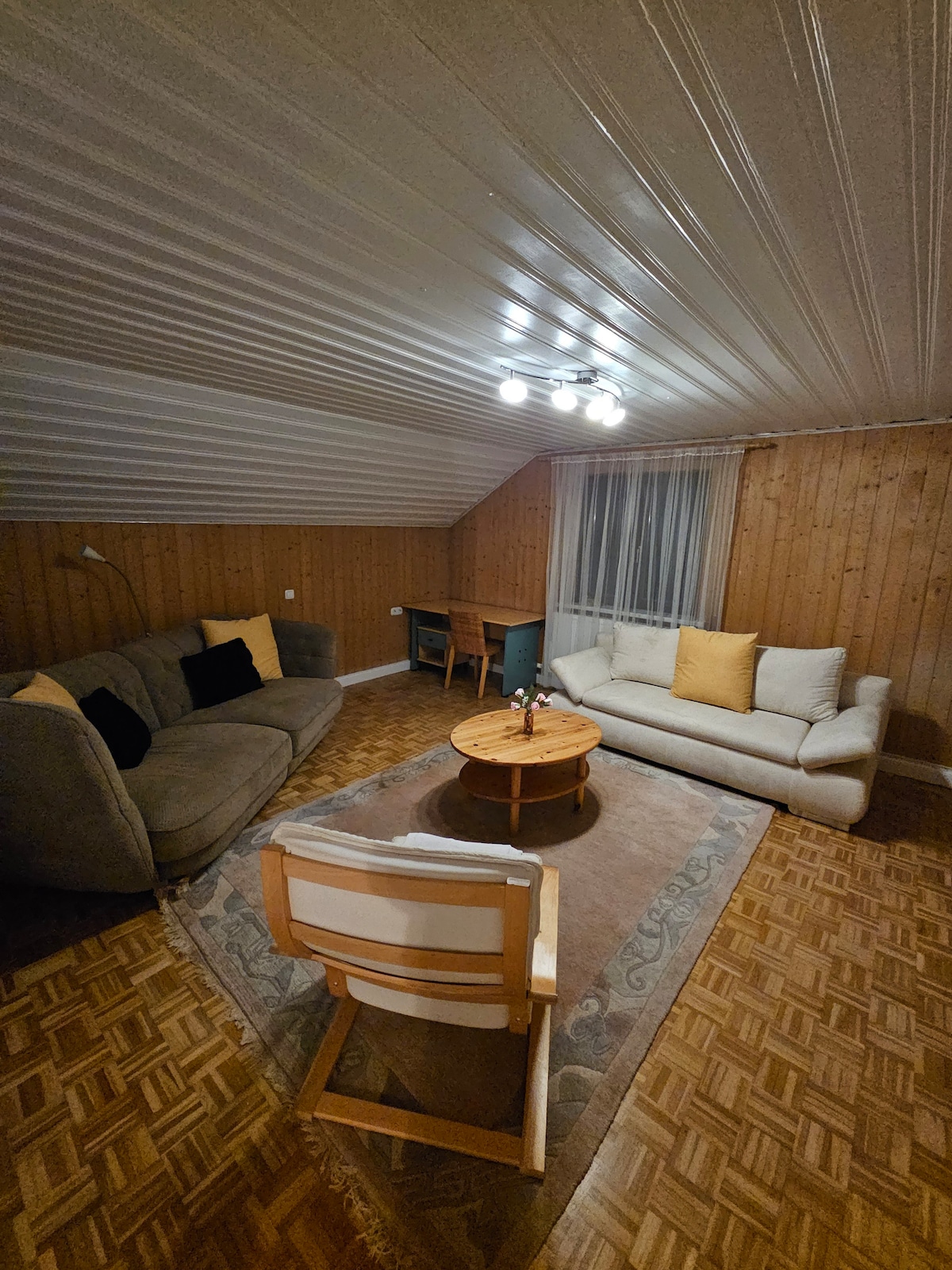 Is teach trí ghné é ár dteach. Ar gach urlár tá árasán a bhfuil daoine cairdiúla ina gcónaí ann. Uaireanta bíonn sé beagán suaite mar gheall ar na páistí. Tá sé suite in Hard/Vorarlberg thart ar 300 m agus na sluaite ag eitilt ó Loch Constance. Is féidir na bealaí chuig an mbácús, an parlús uachtair reoite, an trá, bialanna éagsúla, an stad bus,... a bhaint amach i níos lú ná 5 nóiméad. Is siúlóid 10 nóiméad é an siopa grósaera is gaire. Gach Céadaoin, bíonn margadh i lár an bhaile.
