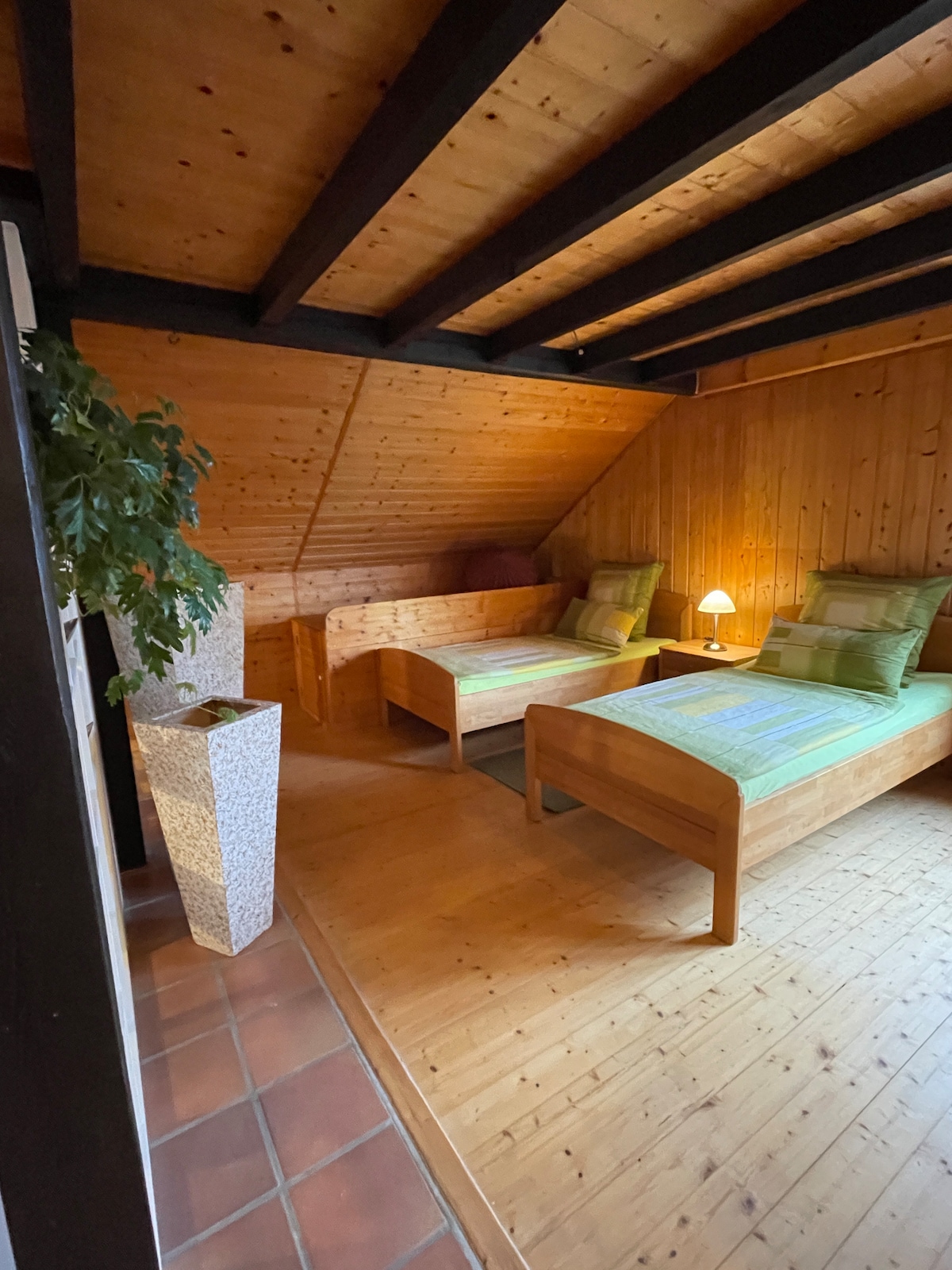 Fáilte chuig an díonteach álainn seo ar féidir leat é a dhéanamh ar feadh gearr iontach nó Fanacht fadtéarmach i ngarchomharsanacht Aerfort Stuttgart agus cuireann an t - aonach trádála gach rud ar fáil: → 4 leaba dhúbailte ar mhéid rí → 2 sheomra folctha → 3 sheomra leapa suas le 8 n - aoi Teilifís → Chliste 75inch & NETFLIX chomh maith le Amazon Prime Córas Fuaime Pictiúrlann→ Bluetooth Idirlíon → ardluais le I Pad → Trealamh Aclaíochta & Leadóg Boird → Caife NESPRESSO → Cistinéad → Meaisín níocháin/triomadóir → Páirceáil saor in aisce Fad → siúil 2 nóiméad go dtí an meall