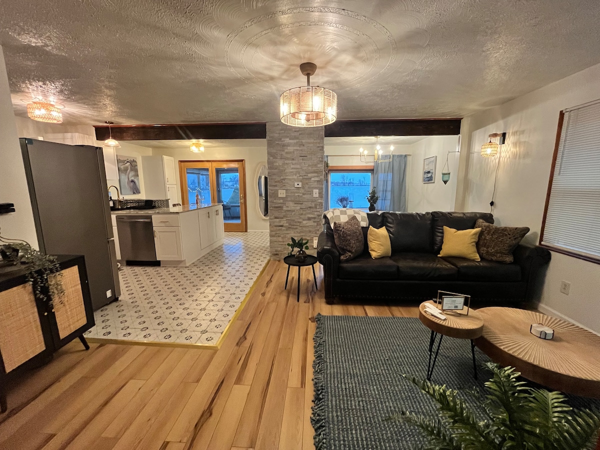 Níl an villa príobháideach uathúil seo suite ar Abhainn Oneida ach nóiméad ó Oneida Lake. Is é seo an áit fhoirfe le haghaidh saoire ghearr do lánúineacha, do laethanta saoire teaghlaigh nó d'aíonna a dteastaíonn áit go leor uathu chun éalú le haghaidh roinnt R & R... is é seo é! Tugann an réadmhaoin radhairc áille ó gach fuinneog agus tá rud éigin ann do gach duine. Iascaireacht, snámh, bádóireacht agus spóirt uisce do na díograiseoirí. Nó díreach suí ar an deic ollmhór, lig do scíth agus tóg isteach an fiadhúlra flúirseach sa cheantar agus tú ag baint sult as an deoch is fearr leat.