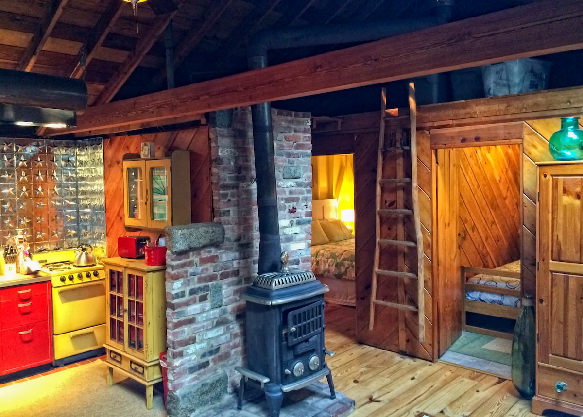 An tearmann foirfe amuigh i gCape - teachín céadair suite sna coillte in aice le lochán ina bhfuil teallach, síleálacha boghta, agus 2 dheic. 5 nóiméad go dtí na tránna, an cosán iarnróid, agus lár an bhaile. Tá Wi-Fi agus teilifíseán cliste sa teachín. Ní bheidh tú ag iarraidh imeacht! An dteastaíonn dhá theach uait sa cheantar céanna? Cuardaigh ár dteachín eile le Googling "The Perfect Getaway in Wellfleet ".