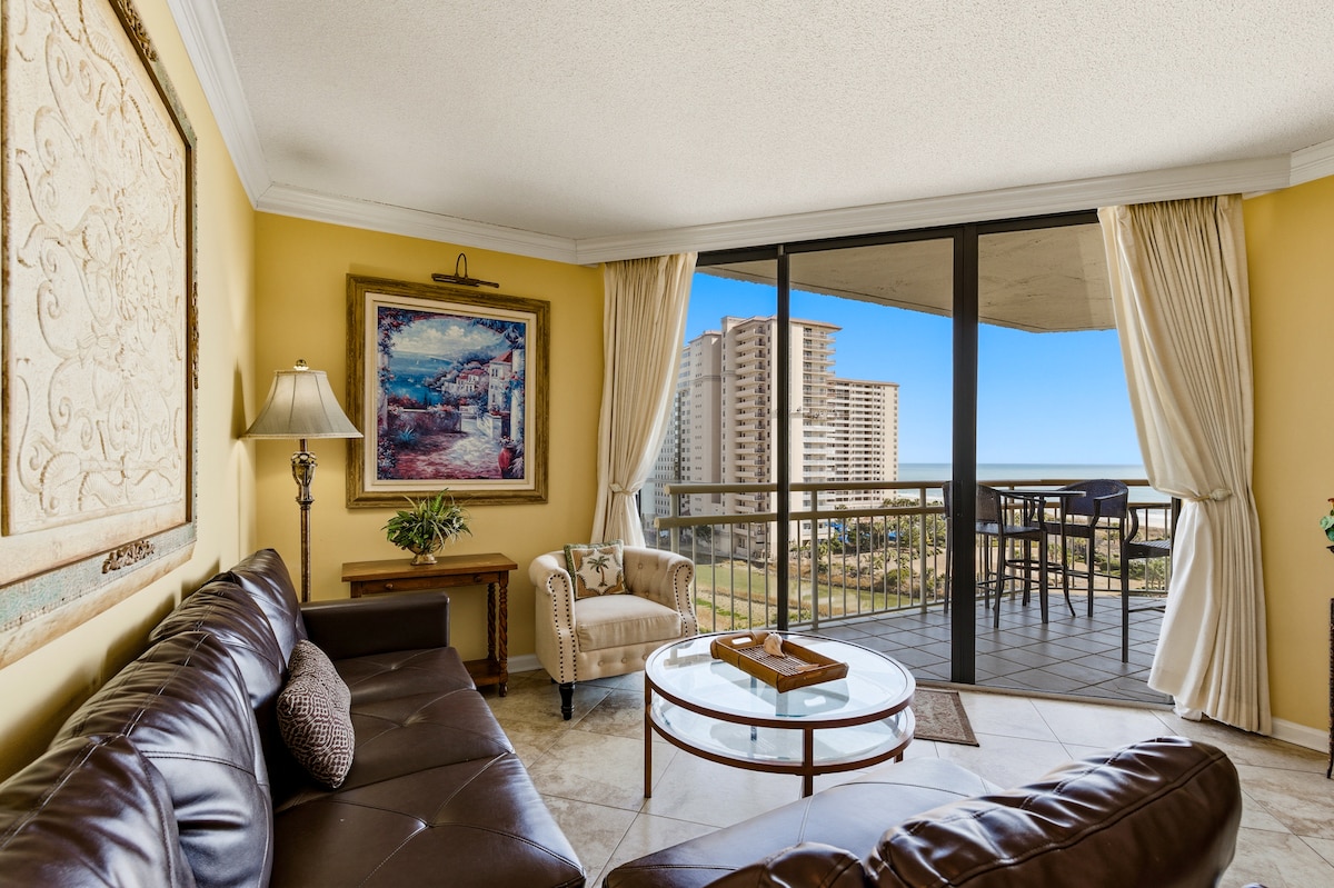 Árasán Príobháideach ar imeall na farraige ag SeaWatch Resort! Táimid ar an 5ú hUrlár agus tá rochtain gan eochair an-éasca againn ar ár n-árasán! Tóg ceann de 4 ardaitheoir síos go dtí an bunurlár agus siúil chuig ceann dár linnte snámha nó díreach chuig an trá! 🏖 Cúpla céim ar shiúl ón trá! -2 Cathaoireacha Trá curtha ar fáil - Rochtain ar GACH linn snámha/jacuzzi Leaba Mhéid an Rí - Páirceáil SAOR IN AISCE agus luchtairí feithiclí leictreacha ar fáil -Meaisín níocháin/triomadóir laistigh den árasán