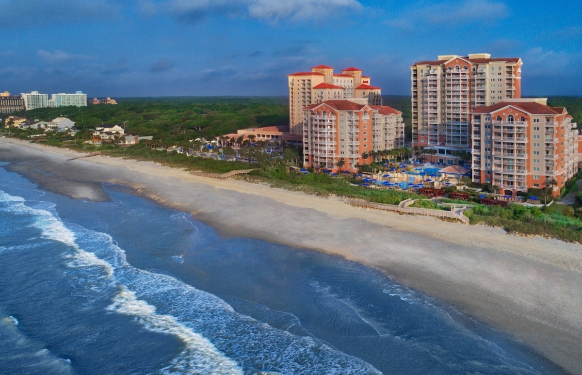 Freastalaíonn an t - ionad saoire ceiliúrtha seo ar bhlasanna gach duine. Níl ann ach céimeanna ón trá, tá sé ag bearradh le siamsaíocht ar an láthair. Lig do scíth i gceann de thrí linn snámha lasmuigh nó dhá linn snámha faoi dhíon, le habhainn leisciúil agus ocht dtobán te. Fuaraigh sa seomra cluiche faoi rialú aeráide nó bain sult as béile ag Sea Breeze Café & Bar. Nuair a bhuaileann an giúmar, tá North Myrtle Beach ag fanacht le do thaiscéalaíocht.