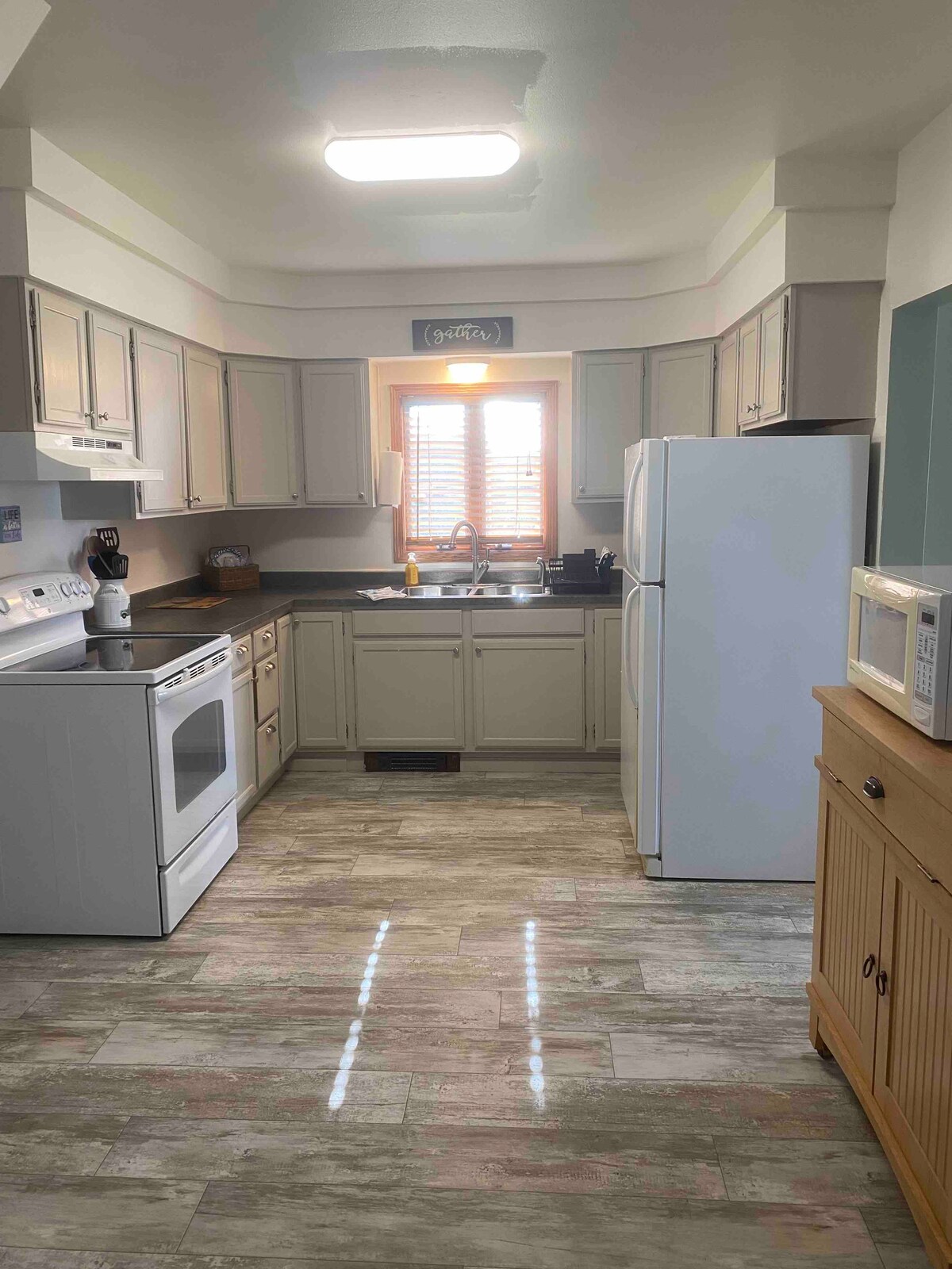 A big house, the kind most American kids dreamed of growing up in. Settled on the furthest edge of town, this 7 bedroom, 3 bath house is private, yet convenient. The 100-mile view as the horses run up for the evening makes it hard to leave! Contact us for whole-house rates, and long-term discounts. NOTE: please put in the correct number of guests for an accurate price.