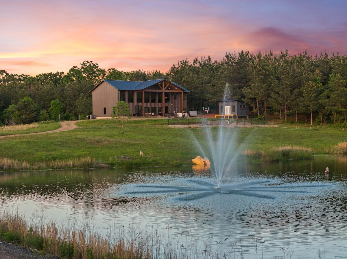 Téigh ar saoire go Blackberry Hills, tearmann príobháideach 6 acra a tógadh le haghaidh caidrimh agus spraoi. Imir pickleball, téigh go dtí an seomra cluichí nó go dtí an fhaiche phutála/phicilte, déan iniúchadh ar Broken Bow, ansin lig do scíth sa tobán te nó sa linn tumtha fhuar agus radhairc shuaimhneacha ar an dúlra romhat. Foirfe do shaoirí gearra grúpa. ⭐ “Saoráidí iontacha, suíomh suaimhneach agus radhairc dholaoidh dodhearmadta.” - Taylor BUAICPHOINTÍ ✓ Cúirt phríobháideach pickleball agus cispheile ✓ Seomra cluichí do gach aois ✓ Tobán te + tumadh fuar + faiche gailf + teallach lasmuigh