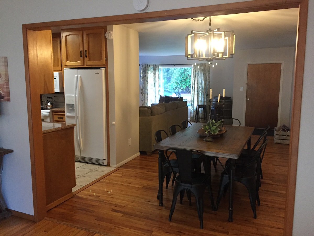 Ag dul go dtí an trá le haghaidh saoire teaghlaigh? Bain sult as radhairc Abhainn Winchuck de ló nó as na soilse paitió nó na réaltaí san oíche ó thobán te deic uachtarach an teachín cúlráideach seo. Níl ach 1/4 míle ón trá Crissey Field State Park agus nóiméad go dtí siopaí & bialanna. Teach nua - chóirithe atá oiriúnach do theaghlaigh a bhfuil 8 seomra codlata ann go compordach. Cistin ollmhór stocáilte do gach ceann de do riachtanais. Má tá uisce agus scíth mar atá á lorg agat, bain sult as an abhainn, an tobán te agus an trá sa suíomh ciúin seo.