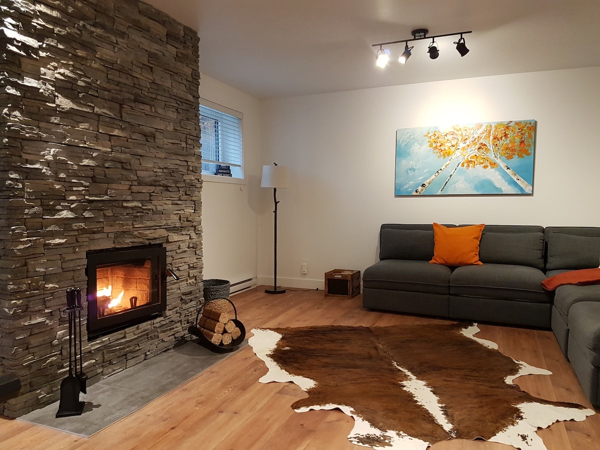 ★ Ceann de na seallaí is uathúla in Mont-Tremblant★ Cábán Gloine Ailtire Uathúil & Scoite i dTreetops Tremblant! Is é an Sköv (Foraois sa Danmhairgis) dearadh uathúil na gcumasc gloine isteach sa tírdhreach ionas gur féidir leat cúlú chun compoird agus só. Is spás ailtireachta atá glónraithe go maorga é a chomhcheanglaíonn simplíocht nádúrtha & só comhaimseartha, 10 nóiméad ó shráidbhaile Mont - Tremblant & ardán lánléargais & Tobán Te Príobháideach In Laurentian. Deartha ag Dearthóir as Ceanada i bhfearann comhroinnte 1200 acra