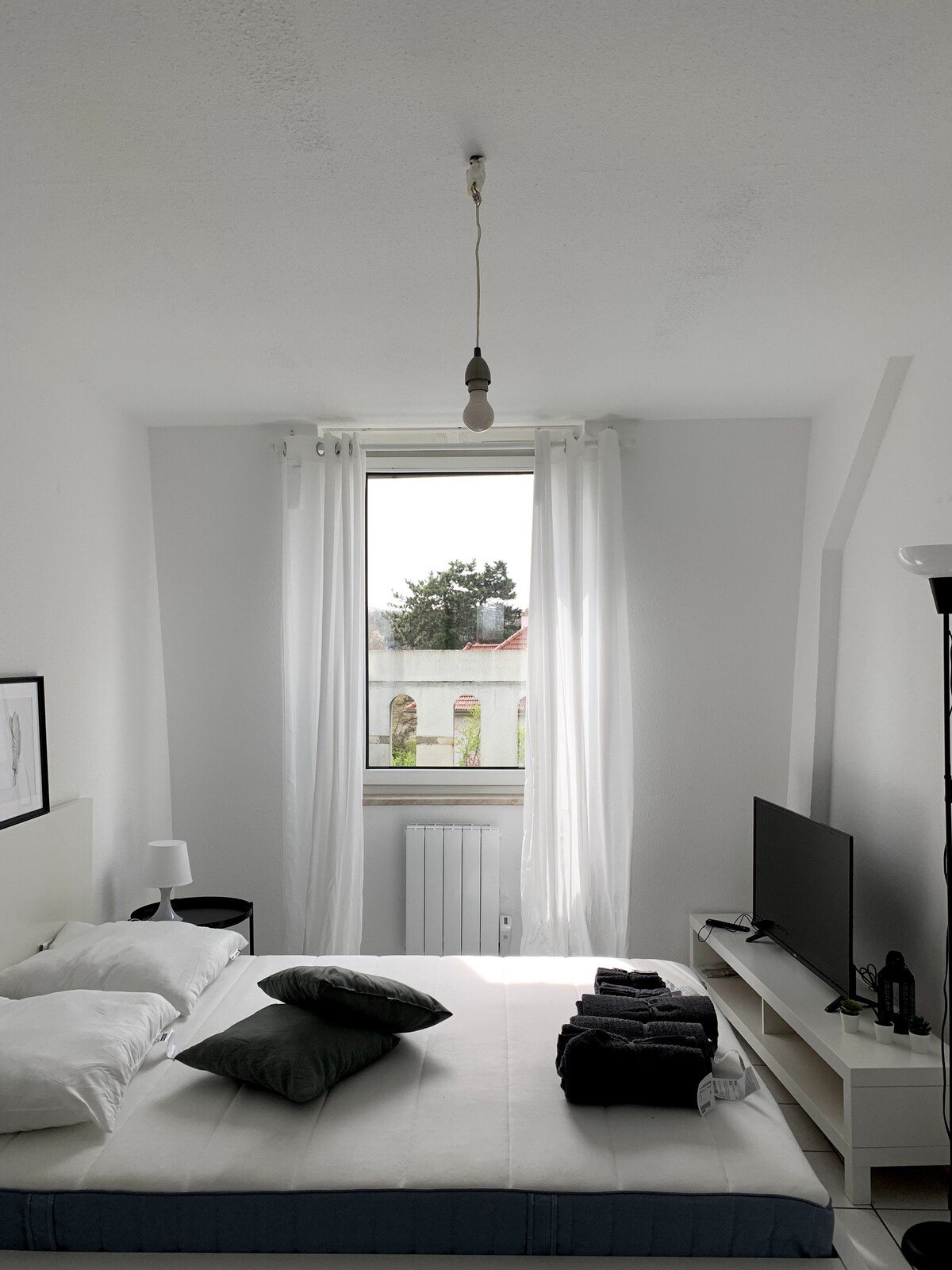 Hipearionad árasán 3 sheomra atá feistithe go hiomlán in MULHOUSE • 67 m2, suite go hidéalach i gcroílár na cathrach. • Stáisiún TGV 5 nóiméad siúil, tram ag bun an fhoirgnimh, chomh maith le gach siopa (crosbhóthar cathair, cógaslann, bialanna...). • Ar an urlár uachtarach (5ú hurlár) le hardaitheoir i bhfoirgneamh i stíl Haussmann, le ardán de thart ar 40 m2 le radhairc ar theampall St Étienne, Vosges agus Black Forest. Tá nasc idirlín %{ bold aige, agus teilifís atá ceangailte le Netflix.