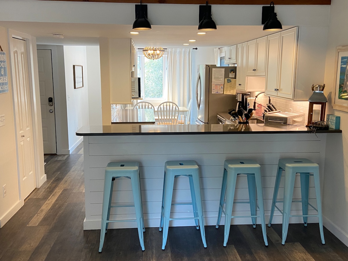 Fáilte go dtí "Marooned Five ". Is breá linn ár dteach a roinnt ionas gur féidir le daoine eile eolas a chur ar áilleacht agus ar dhraíocht Bald Head Island. Tá 2 sheomra leapa, 2 sheomra folctha iomlána, cistin ina bhfuil stoc iomlán (athchóirithe i mí an Mhárta 2024 agus 2022!) agus lochta fairsing do na páistí inár dteach. Lonnaithe in Royal James Landing, tá linn snámha phríobháideach agus láthair phicnice ar fáil le húsáid cúpla céim ar shiúl. Tá 6 rothar ann (4 dhuine fásta/ 2 leanbh) & 2 chairt gailf 4 dhuine. Tá ballraíochtaí na n - aíonna don Chlub BHI ar fáil ar tháille bhreise.