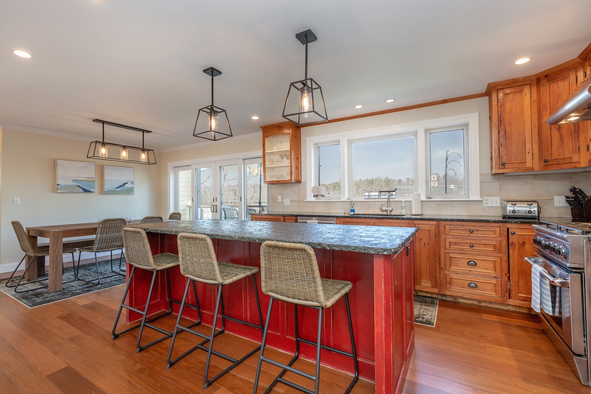 Castle Rock is a captivating 3-bedroom, 3-bath family retreat offering waterfront views and convenient in-town living. Immerse yourself in the charm of Brunswick’s scenic surroundings with a 3-mile paved bike path along the Androscoggin river, where eagles soar and sturgeon jump. In a short walk into town, you’ll find all of the restaurants and the activities associated with a college town, with the prestigious Bowdoin College just a mile away.