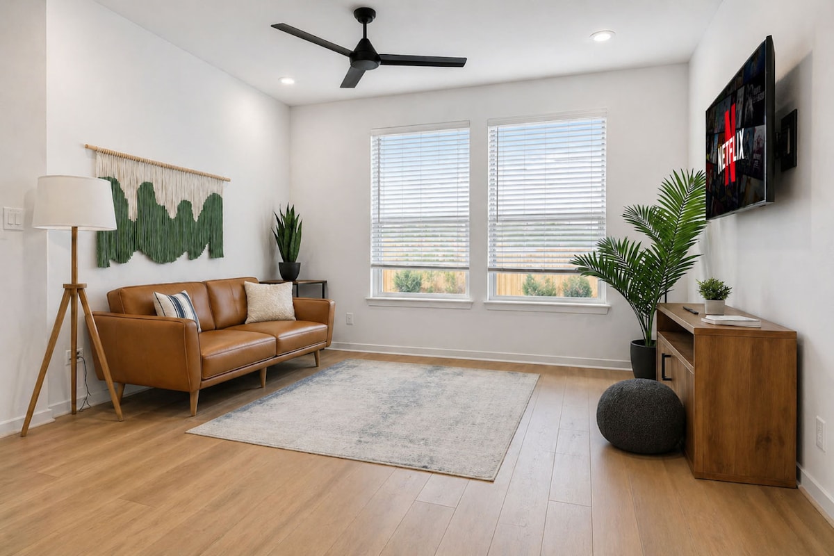Step into a GORGEOUS & MODERN 1 bedroom apartment that is centrally located so you’re an arm’s reach from major retail stores. If you are looking for a convenient and stylish stay with incredible amenities, this is the perfect spot. Your stay will include: 🔵 1 Queen Bed 🔵 Fully Stocked Kitchen 🔵 Fast WiFi 🔵 Washer and dryer in unit 🔵 Public resort style pool 🔵 Fitness Center 🔵 EV Chargers