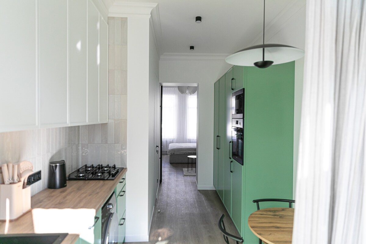 Árasán dhá sheomra le hathchóiriú nua i lár Lviv. ✨Wi-fi24/7+ soláthar cumhachta gan bhriseadh BLUETTI EB3A 600W 268Wh. Árasán ar an 4ú hurlár i gceann de na clóis is áille ar Shráid Copernicus. Is féidir dul go dtí Cearnóg an Mhargaidh agus an Amharclann Ceoldrámaí ar shiúl na gcos. Dhá sheomra leapa scoite, 2 leaba dhúbailte chompordacha agus tolg leathnaithe, mionchistin feistithe le fearais agus mias nua-aimseartha, teas aonair agus teas urláir.