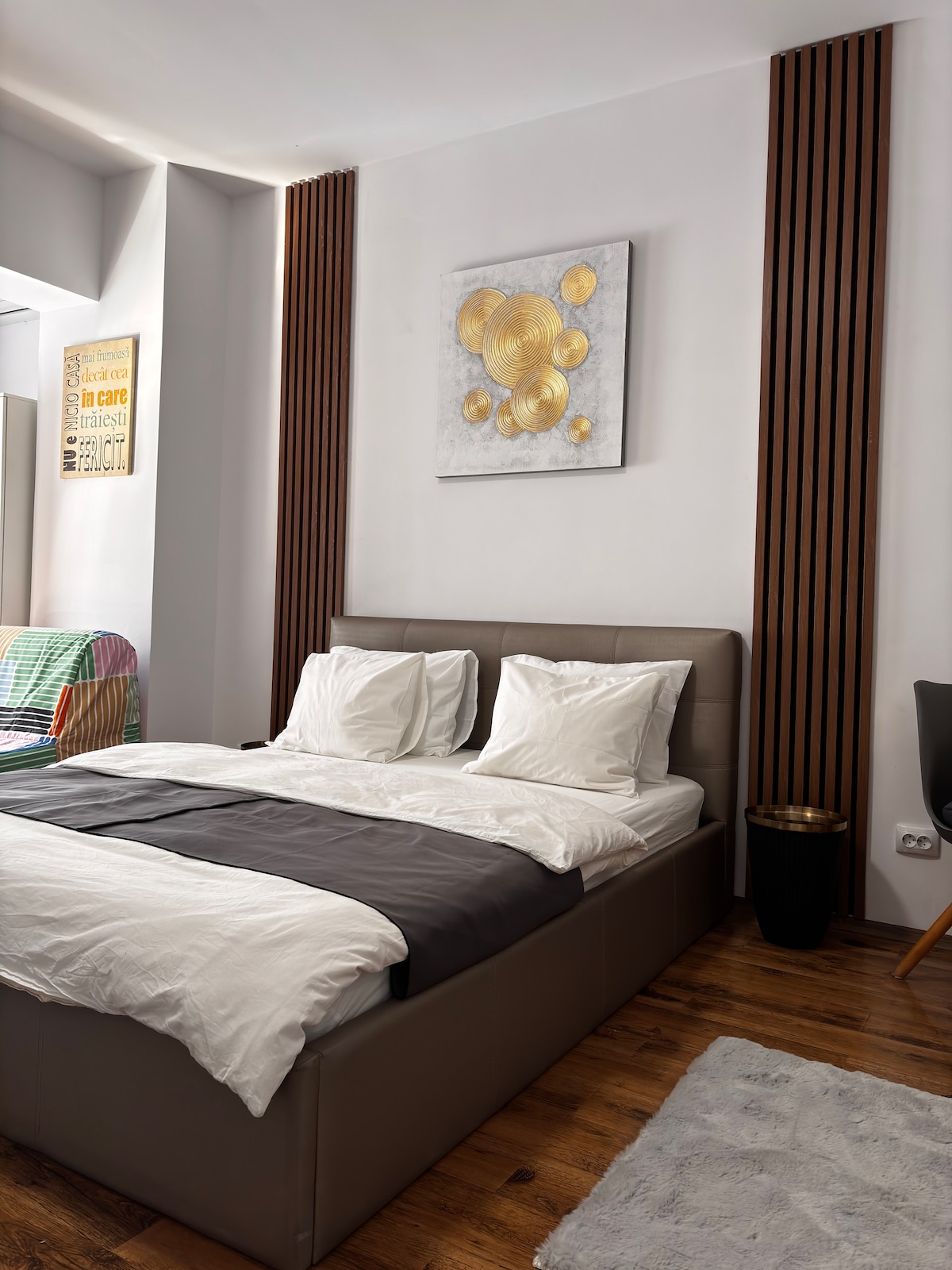 Cuireann an Stiúideo nua - aimseartha seo gach rud atá uait le haghaidh do thurais go Búcairist ar fáil. Tá leaba bhanríona ar mhéid an tseomra leapa, Tá ár n - áit cúpla céim ar shiúl ó roinnt bialanna, ollmhargaí, páirceanna agus iompar meitreo. Áit iontach chun iniúchadh a dhéanamh agus taitneamh a bhaint as Búcairist!