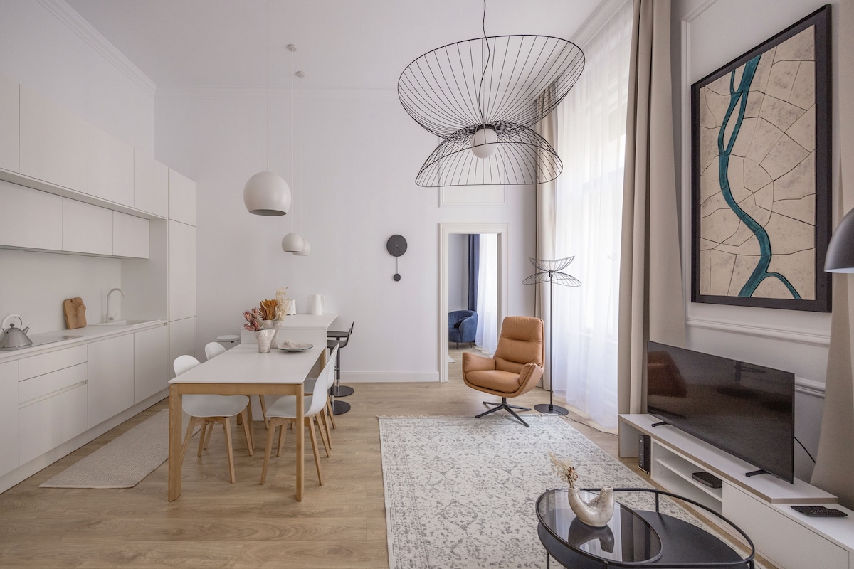 Tá an t - árasán só athchóirithe seo deartha agus cruthaithe ag dearthóirí intí a bhfuil duaiseanna buaite acu chun na caighdeáin is airde a thabhairt duit i ngach slí. Má theastaíonn áit uait chun do scíth a ligean i do chompord agus i stíl, níl cuma ar bith air a thuilleadh. Suite go foirfe i sráid chiúin díreach taobh thiar de Halla an Mhargaidh Mhóir cáiliúil agus díreach cúpla céim ó bhruach na Danóibe agus ó Dhroichead na Saoirse ní féidir leis an suíomh a bheith níos fearr. Tá stáisiún Metro 3 agus 4 agus an "fámaireacht" tram #2 "4 nóiméad ar shiúl.