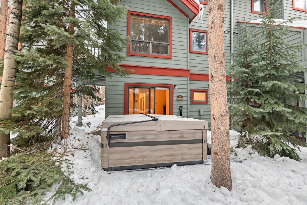 Lig do scíth sa suíomh síochánta seo atá fós gar do gach rud atá le tairiscint ag Breckenridge. Siúl síos an tsráid agus timpeall an locháin chuig Ardaitheoir Quicksilver ag Buaic 9 nó siúil cúpla bloc go dtí an taobh ó dheas den Phríomhshráid. Suíomh galánta le mothú príobháideach, sa choill. Ina bhfuil tobán te príobháideach agus garáiste príobháideach téite, is annamh a fhaightear sa chomharsanacht! Trí sheomra leapa/3.5 seomra folctha, 4 dheic, teallach gáis, agus rochtain ar linn snámha/tobán te columbine ar fud na sráide.