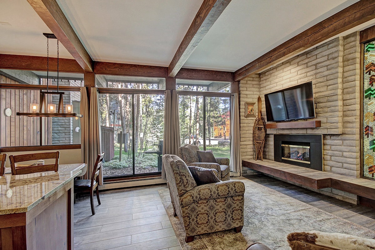 Tá an teach baile fairsing seo atá maisithe go blasta foirfe do theaghlaigh agus do ghrúpaí ar mian leo a bheith gar d'ardaitheoirí, do shiopadóireacht agus do shaol oíche Breck. Taitneoidh na síleálacha taibhseacha boghtaí, plean urláir oscailte, agus fuinneoga ón urlár go dtí an tsíleáil leat a thairgeann solas nádúrtha álainn. Siúl 5 nóiméad trí chomharsanacht shíochánta go hardaitheoir Quicksilver, 1.5 bloc ón mbaile. Le tobáin the agus linn snámha, is é seo an saoire sléibhe ar feadh na bliana foirfe. Le Alexa!