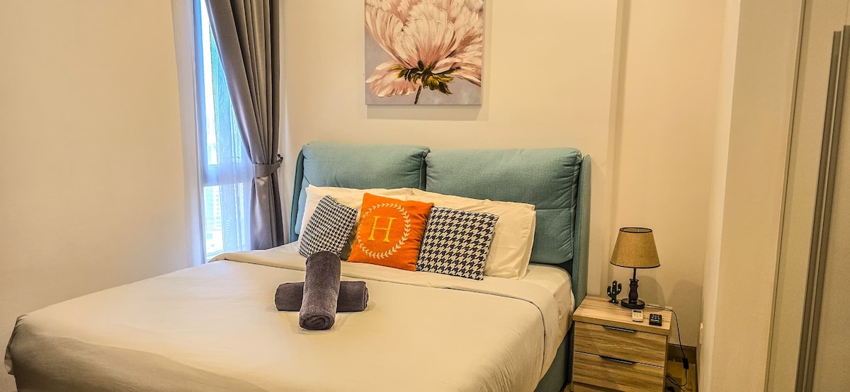 Fáilte go dtí Revo Bukit Jalil ! Árasán Stiúideo nua - aimseartha le dearadh teolaí! *Uasghrádaithe go Teaglama Triomadóra Meaisín Níocháin 2 in 1 - 1 leaba bhanríona - 1 pháirceáil saor in aisce - Linn snámha ar an díon - Díreach in aice le Pavilion Bukit Jalil - siúlóid 30 soicind go dtí Bealach Isteach an Phailliúin - In aice le Staid Bukit Jalil (Foirfe duit fanacht thar oíche tar éis duit féachaint ar cheolchoirm nó ar imeachtaí eile) - Idirlíon Ardluais - Netflix ar fáil Bileog leapa bhán Uisce cithfholcadáin te ardbhrú