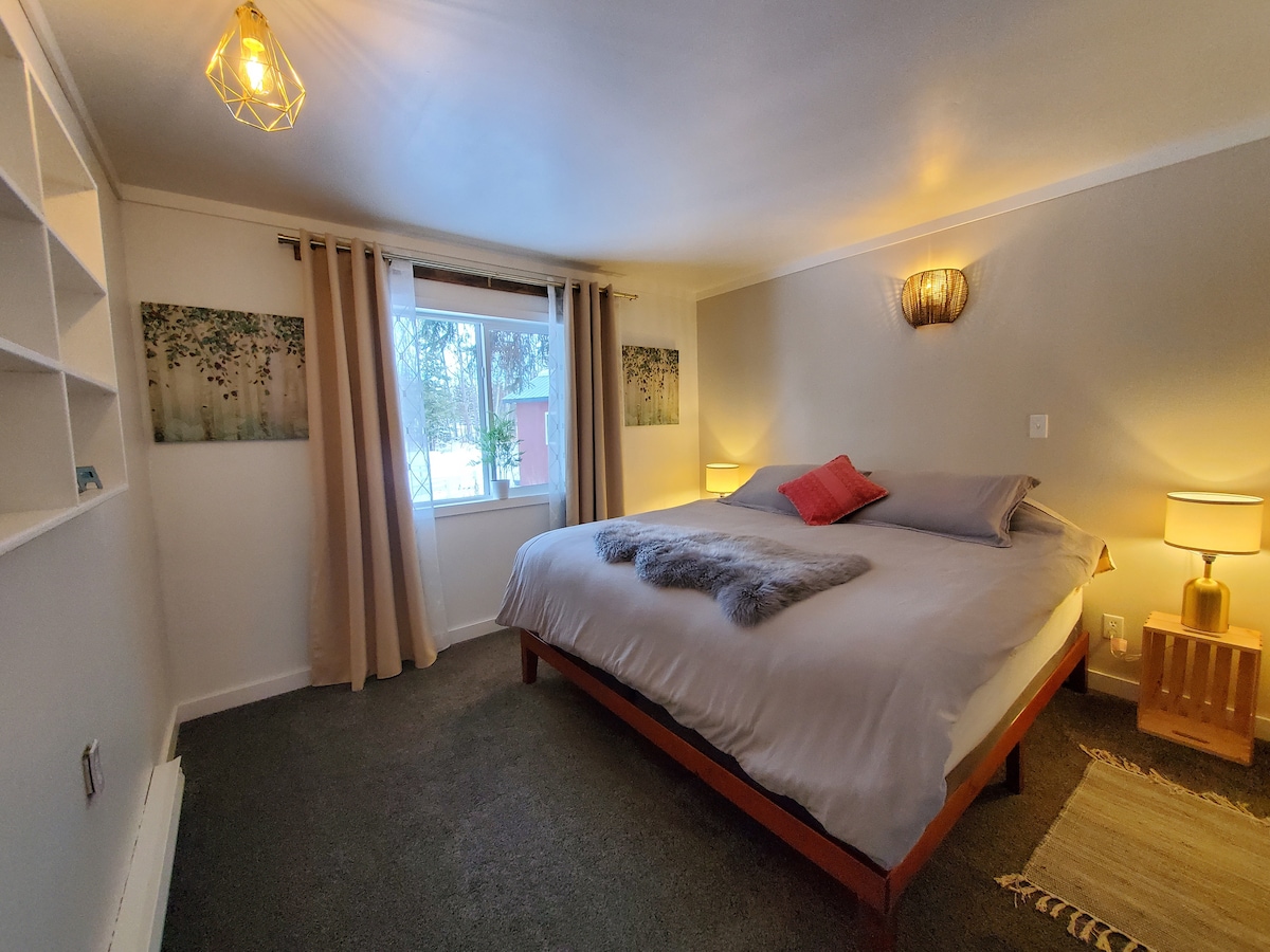 Bí réidh ag an saoire ghearr uathúil shuaimhneach seo. Is píosa ama i bParthas é d'fhanacht anseo i ndáiríre. Radharc iontach cois locha. 2 Phaitió mhóra. Faiche mhór. Nightly sunsets. Tolgaí ollmhóra compordacha leathair. Svuít Luxurious King le teallach. Línéadach tí só is fearr. Mothóidh tú go bhfuil ríchíos tíre millte agat. Teas leictreach éasca nó tine adhmaid chompordach, do rogha féin. Aerchóiriú. Tá na héisc ag léim agus tá na locháin ag glaoch. Snowshoe/kayak ar fáil sa séasúr. Cuir ceist faoi smaointe fánaíochta.