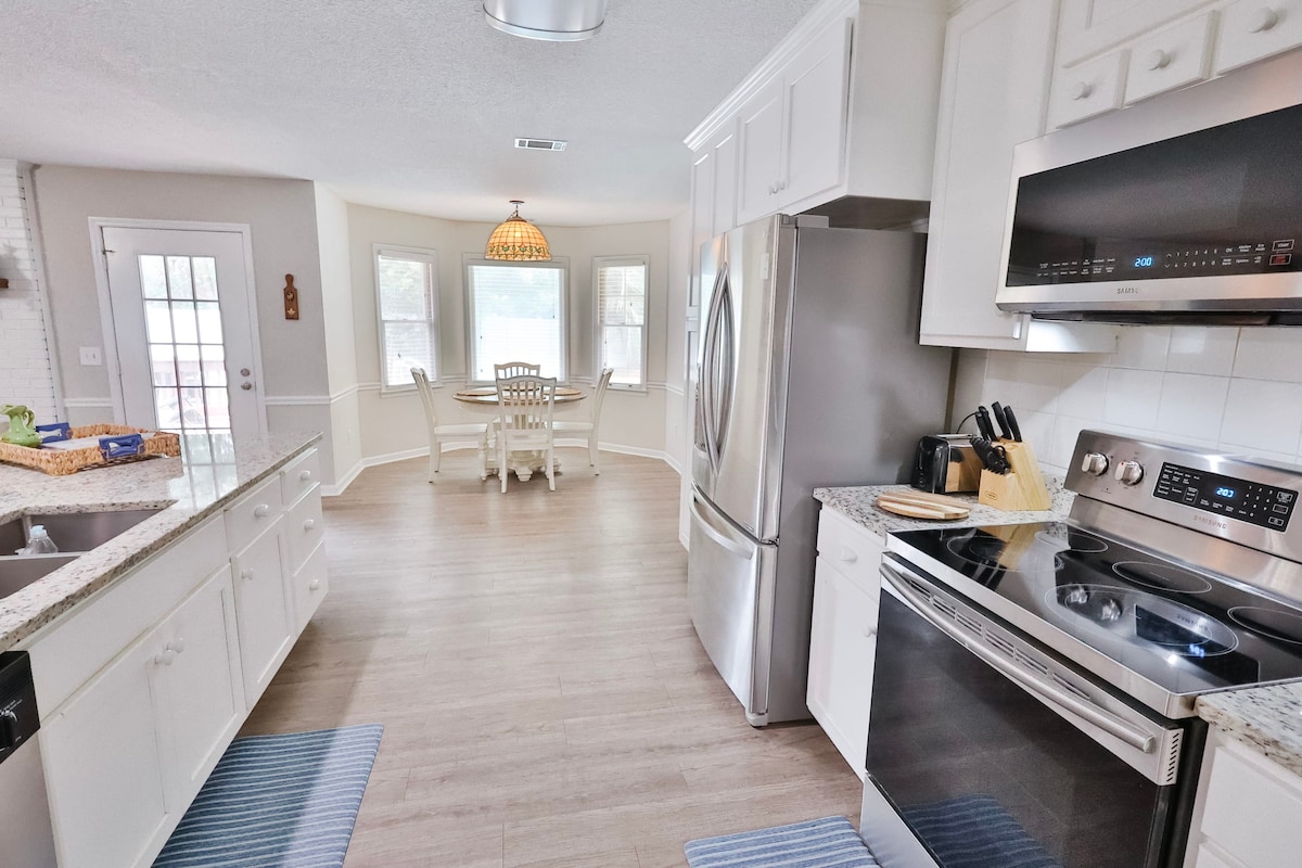 Aonad nua - athchóirithe le cuntair eibhir, urlár úrnua, splancscáileán ar ais saincheaptha agus fearais cruach dosmálta. Is 3bd/2ba é atá suite in Statesboro, GA le mothú úr, comhaimseartha. Tá sé suite 1 mhíle ar shiúl ó Ollscoil Georgia Southern agus thart ar 60 míle ar shiúl ó Savannah, GA. Tá sé 2 mhíle ó gach siopadóireacht agus bia! Tabhair faoi deara gur leath de dhúblach é seo.