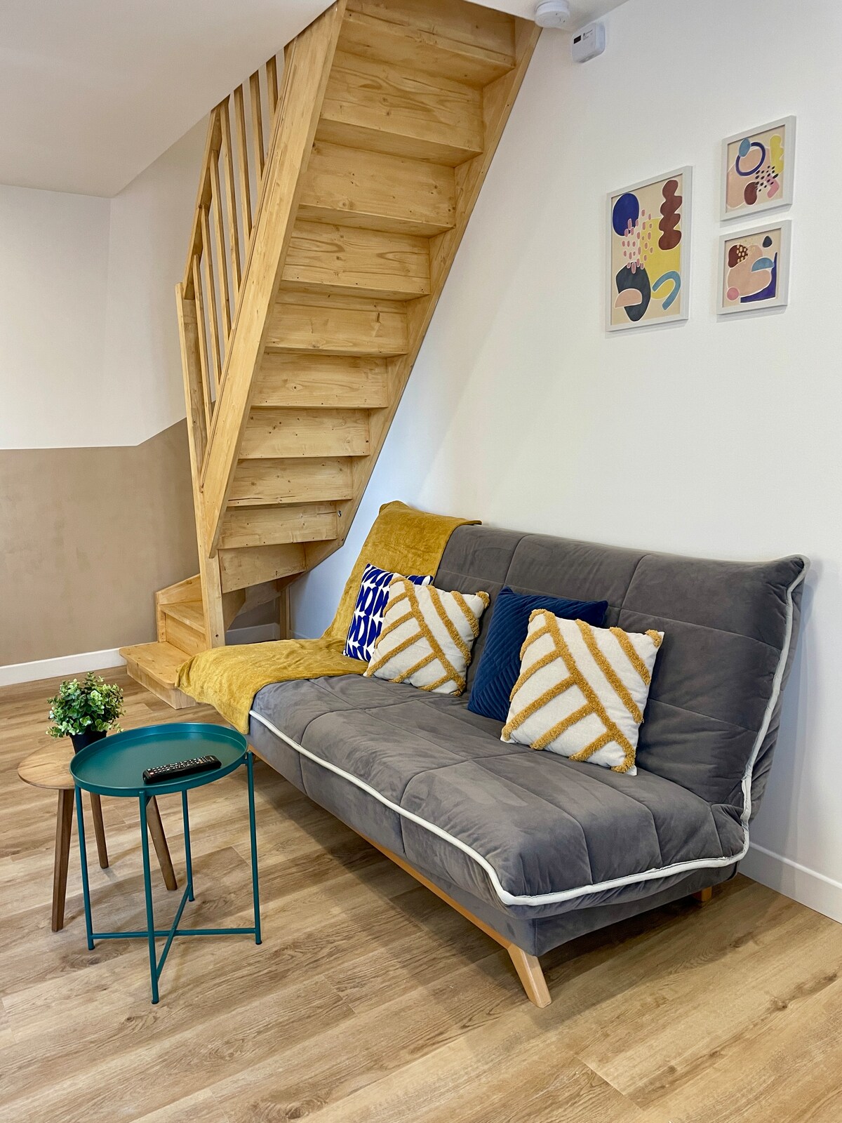 Lochta comhaimseartha taitneamhach de 80 m2 i sean - scioból athchóirithe. Tá an t - aonad aonair ar shráid chiúin in Bazeilles. Is éard atá ann: - Ar an mbunurlár: garáiste, rochtain ar phaitió beag (12 m2) - Ar an gcéad urlár: áit suí (seomra suí, seomra bia) ina bhfuil cistin oscailte chomhtháite, seomra cithfholcadáin, leithreas - Ar an dara hurlár: rinne mezzanine a thiontú ina limistéar codlata/limistéar oifige. Soláthraíonn fuinneoga dín (leictreach le comhlaí) soilsiú nádúrtha do spásanna maireachtála.