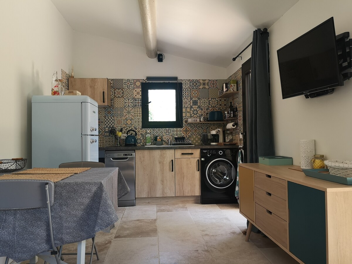 Tar agus faigh do scíth i gcroílár Luberon. Nóiméad scíthe i gcroílár an dúlra. Bain sult as ár spásanna glasa a fhéachann ó dheas: gairdín glasraí, cró cearc, goirt olóige agus dair strufail. Faigh amach faoinár limistéar snámha nádúrtha chomh maith le do Jacuzzi téite 40°C. Bain sult as Bealach Rothaíochta Calavon (siúlóid 500 m) agus Colorado Provençal (tiomáint 10 nóiméad) atá foirfe do shaoirí áille! Agus gan trácht ar mhargadh APT, ceann de na margaí is mó sa Fhrainc!