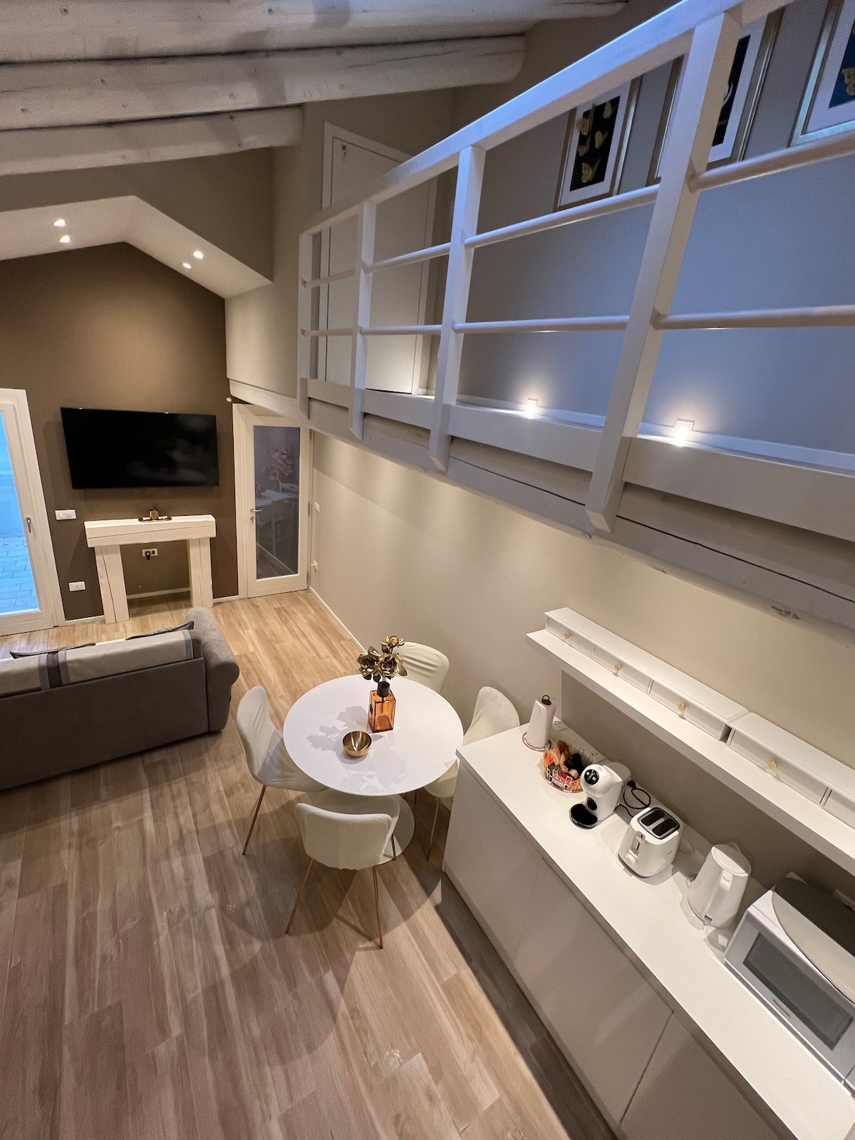 Árasán beag le haird ar mhionsonraí atá oiriúnach do bheirt atá lonnaithe 10 nóiméad ó Chearnóg Naomh Marc. Is áit de chineál é an radharc ar an gcanáil phríobháideach ar thaobh amháin agus an clós istigh ar an taobh eile. Tá an teach feistithe le haerchóiriú agus Wi - Fi neamhtheoranta agus in aice láimhe tá go leor siopaí, delicatessens agus gnáthbhialanna. De réir na bhforálacha chun cosc a chur ar thógáil Covid -19, tar éis gach fanachta déantar sláintiú cóireála ózóin.