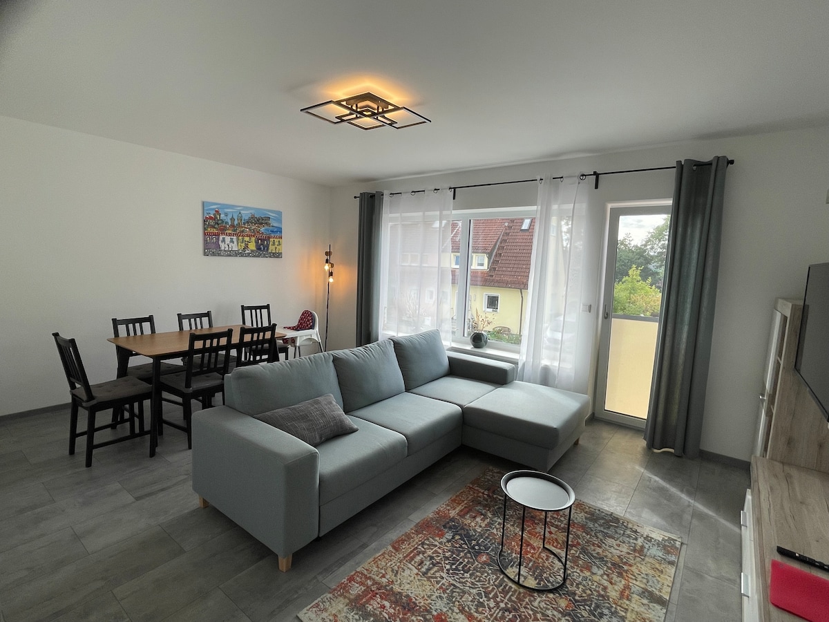 Tabhair an teaghlach ar fad chuig an árasán nua - aimseartha 100 méadar cearnach seo i bhfoirgneamh stairiúil atá athchóirithe go hálainn. I ngarchomharsanacht Chanáil Ludwig - Main - Donau agus go leor nithe is díol spéise agus áiteanna áineasa eile. - Altdorf bei Nuremberg - Nuremberg - Regensburg - An Eilvéis Fhrancach - agus i bhfad níos mó. Naisc iompair fhoirfe i gcarr leis na mórbhealaí A3, A6, A9 - Nuremberg Messe (30 nóiméad) - Ionad Nuremberg - Nuremberg Tiergarten - Dúshlán Roth