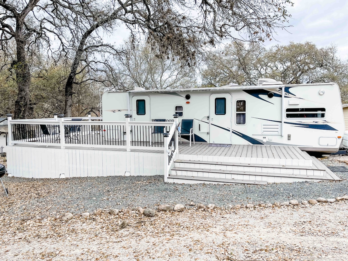 NÍ féidir leat a chreidiúint gur RV é seo. Tá sé an - mhór agus thar a bheith álainn!!! Siúil amach as an doras go dtí an t - uisce agus téigh ag snámh agus ag cócaireacht ar an ngríoscán. Tá go leor teachíní agus RVs spásáilte againn timpeall na réadmhaoine. Tá rampa báid againn chun do bhád a chur san uisce. Ba le Willie Nelson an mhaoin seo tráth. Tugadh Campa Pedernales air. Tar agus bain sult as ***Mar gheall ar an triomach atá ann faoi láthair tá na leibhéil uisce síos. Tá an duga báid agus seoladh báid as an uisce faoi láthair.