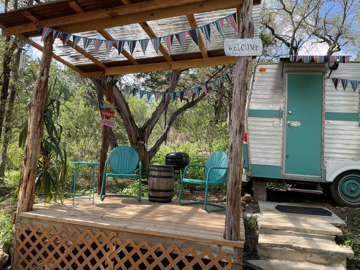 A new glamping retreat in the Hill Country located off Hwy 71 E near Lake Travis, Luck Ranch, and Krause Springs. We are surrounded by more than 100 vineyards and breweries. Our collection of 4 tiny cabins and 7 vintage RV's rest on 20 acres of countryside and is yours to explore (check out our other rentals on Airbnb as well). Build a fire, BBQ with friends, travel to surrounding local communities, Marble falls, Johnson City, Burnet, & Lampasas. Come escape and relax with us at Green Acres.