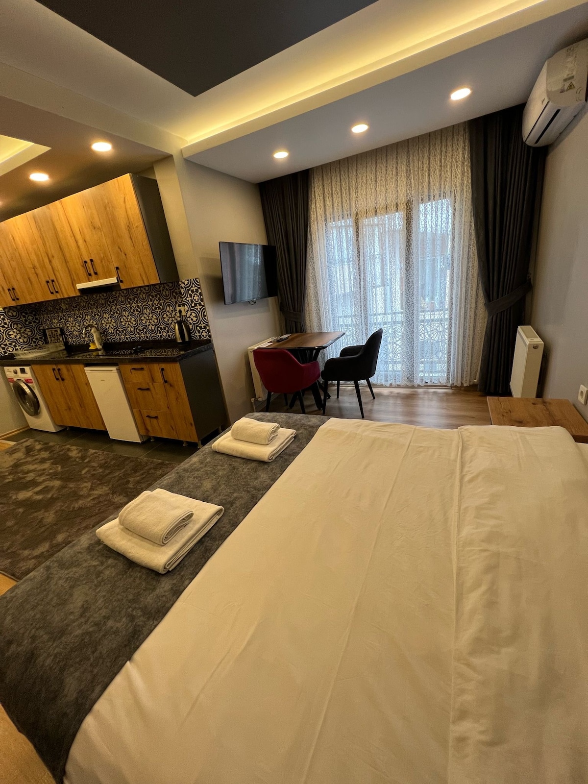 Seo foirgneamh Rum Stairiúil darb ainm “Rum_ Otto” i gcroílár Taksim. Rinneamar athchóiriú cúramach ar an bhfoirgneamh le dearadh beag Ottoman chun an stair a choinneáil beo agus dearadh beag nua - aimseartha chun d'fhanacht a dhéanamh compordach. Tháinig gach rud taobh istigh de “rang a haon” chun cinn go dtuigeann tú go héasca le linn d'fhanachta. Tá an teach i sráid go leor ach tá an suíomh lárnach, éasca le caife, bialann, beár, siopadóireacht agus iompar a fháil. Foirgneamh Stairiúil athchóirithe le Tógáil Crua Cruach ar "chód crith talún"
