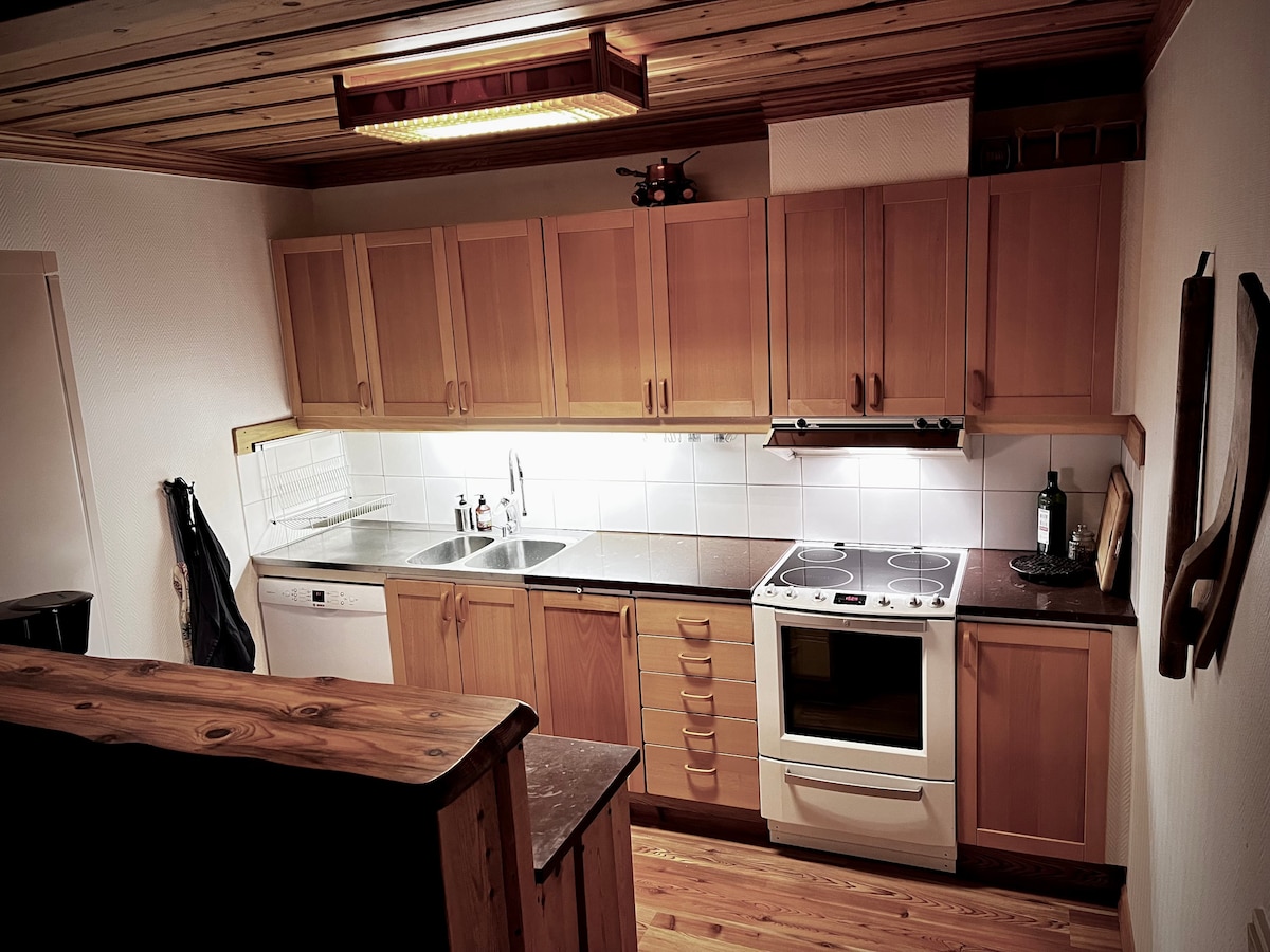 Fáilte chuig an teach teolaí seo atá cóngarach d'fhánaí sciála Bydalen. Tá an t-árasán suite ar an mbunurlár agus tá dhá sheomra leapa ann le leapacha do sheisear agus dhá sheomra folctha. Tá an chistin pleanáilte go maith agus tá sí ceangailte leis an áit itheacháin. Sa seomra céanna freisin tá leaba thoilg, cathaoireacha uilleach agus teallach le haghaidh cósúlachta tar éis lá ar na fánaí. Tá sauna álainn sa teachín freisin le spás do sheisear. In aice leis an gcábán, tá ardaitheoir tarraingthe a thógann suas go dtí an córas ardaithe thú. Fáilte!