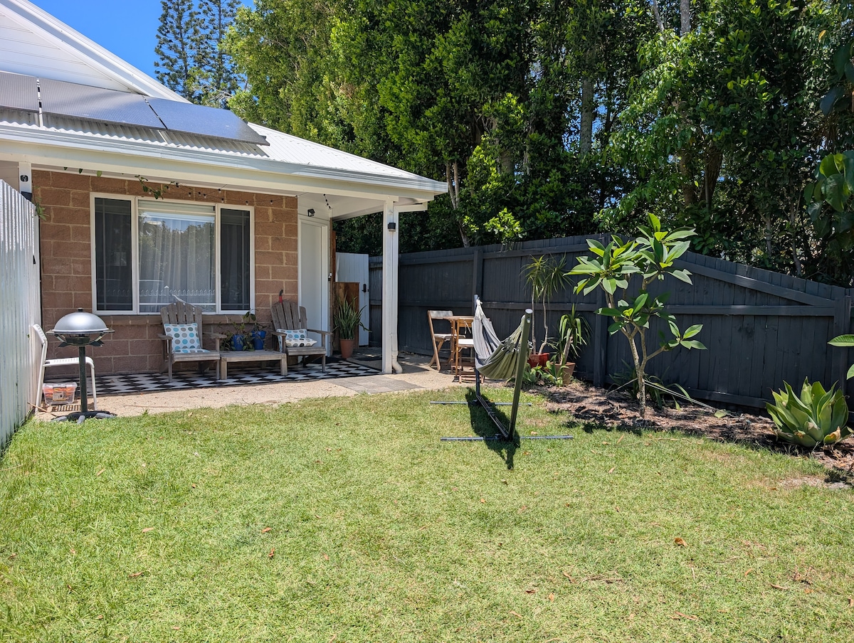 Our property has an exceptional location, less than two minutes walk toTallow Beach. Set on a corner block in a quiet residential street, it is an ideal retreat from bustling Byron.The village of Suffolk Park, 5 minutes walk away, supplies almost everything you need. We have plenty of beach gear for interstate and international guests: beach towels, shade tents, sand chairs, rugs, yoga mats etc. A desk chair and laptop table is available if required. Inquiries welcome!