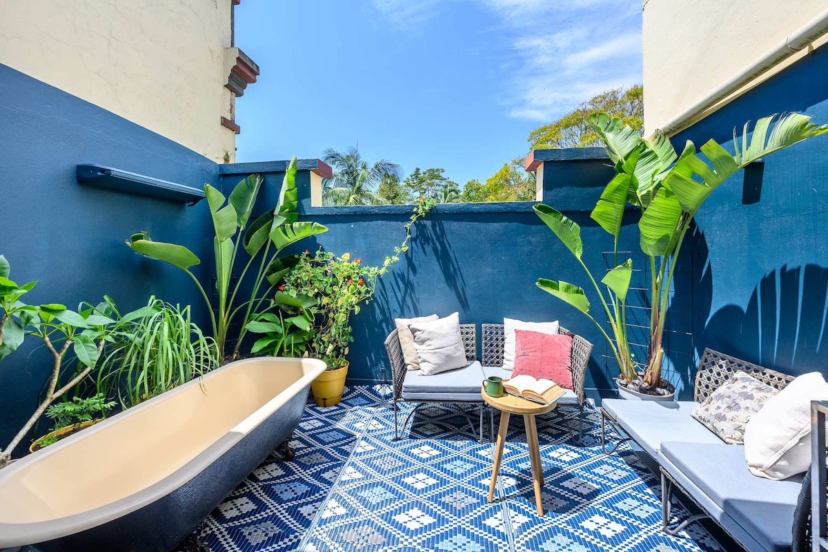 Éalaigh go dtí The Garden Loft, áit fholaithe phríobháideach shómasach i mBangalow atá timpeallaithe ag fásra méith. Osclaíonn seomra leapa aislingeach rómánsúil ar chlós príobháideach faoin aer, atá foirfe do mhaidineacha suaimhneacha agus folcadh faoin aer faoi sholas na réaltaí. Téann an limistéar suaimhneach comhluadair chuig veireandán grianmhar atá frámaithe le luibheanna agus plandaí — áit álainn chun do scíth a ligean. Céimeanna ó chaiféanna, ó bhúitíceanna agus ó scoth Bangalow.