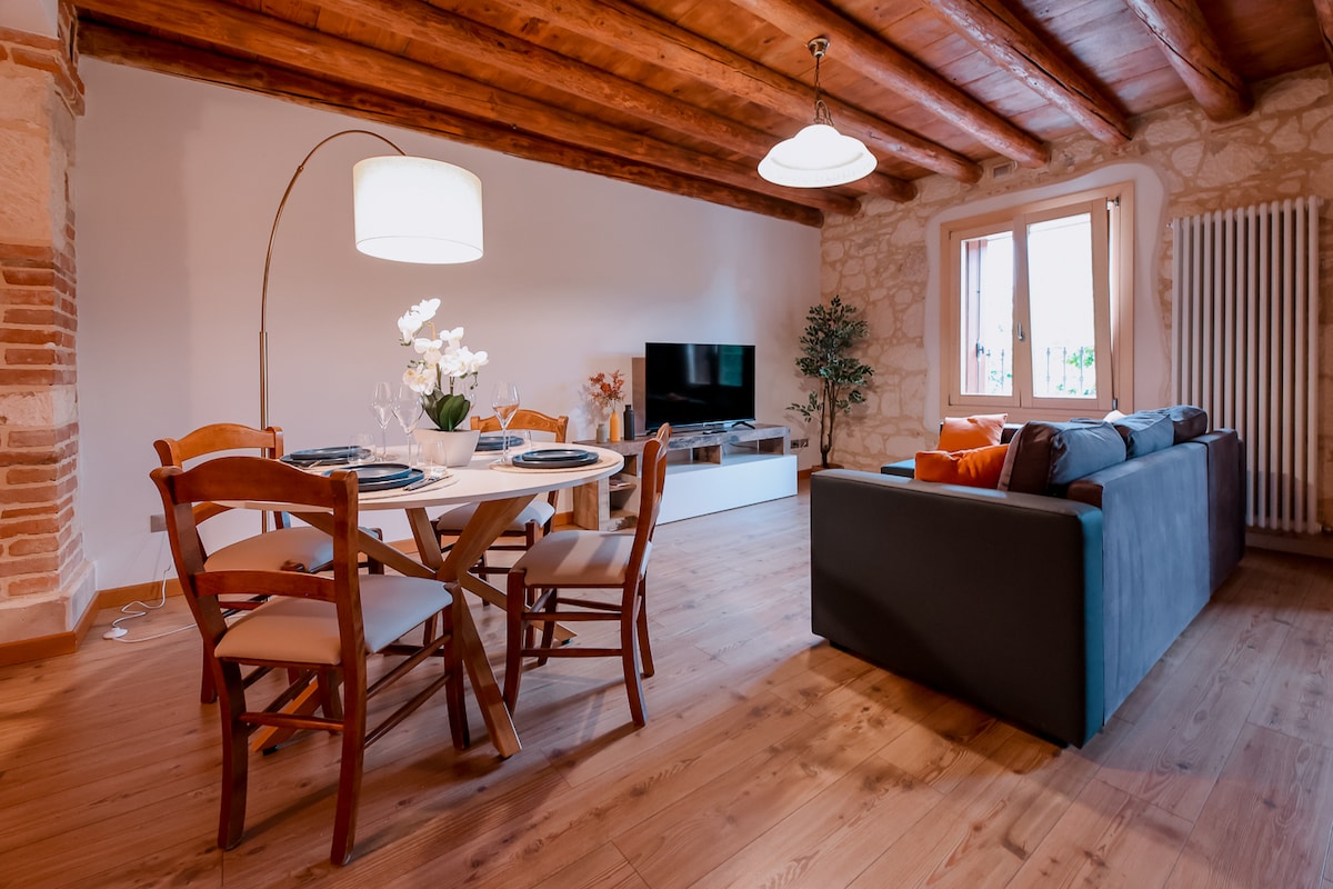Is árasán galánta é an Palladian Suite ina bhfuil radharc lánléargais den scoth ar áille Vicenza: an Basilica Palladian, Cearnóg Palladio, agus Cearnóg Signori. Tá an svuít, atá suite i bhfoirgneamh stairiúil le hardaitheoir, feistithe go breá le gach rud a theastaíonn uait le haghaidh fanacht compordach: leaba Rí - Méid, teilifís LG Ultra HD 4K leis na seirbhísí sruthaithe is fearr (Netflix, Youtube, srl.), aerchóiriú, agus cistinéad le meaisín caife Nespresso agus oigheann micreathonnach LG.