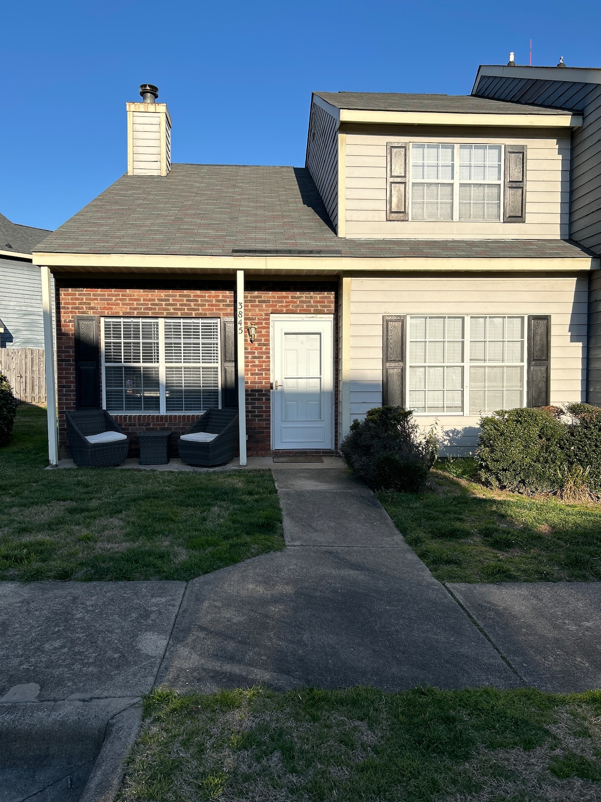 Modern 2BR townhouse just 5 mins from UNC Charlotte! Upstairs: king + queen bedrooms, shared full bath w/ double vanity & walk-in shower. Downstairs: queen sofa bed, full kitchen, dining for 4, half bath, desk. Enjoy fast Wi-Fi, free parking, private fenced yard, self check-in. Pet-friendly & long-term stays welcome w/ discounts. Ideal for campus visits, business trips, or city getaways—This townhouse has everything you need for a comfortable stay!