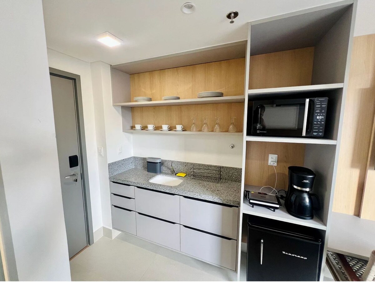 Apto novo a 600m da praia de Ponta de Campinas.