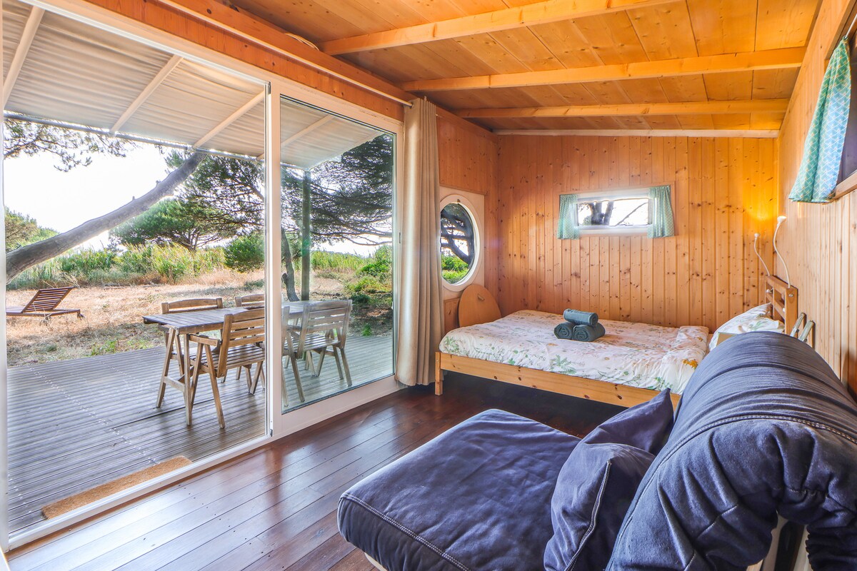 Tá ár gcábán teolaí suite i bPáirc Nádúrtha Arrábida. Le cistin bheag fheistithe agus leithreas ina bhfuil cithfholcadán te, Is áit iontach é do lánúineacha agus do theaghlaigh bheaga chun am suaimhneach ardchaighdeáin a chaitheamh faoin tuath (níl comhartha lag ag aon teilifíseán, fón + nasc idirlín). Le tránna áille, cosáin cois cósta gan deireadh agus sunsets iontacha thar an Atlantach, tugann an cábán crann rúnda cuireadh duit do scíth a ligean agus iniúchadh a dhéanamh ar na ceantair máguaird agus ar thránna áille trí fhánaíocht, rothaíocht agus go leor eile.