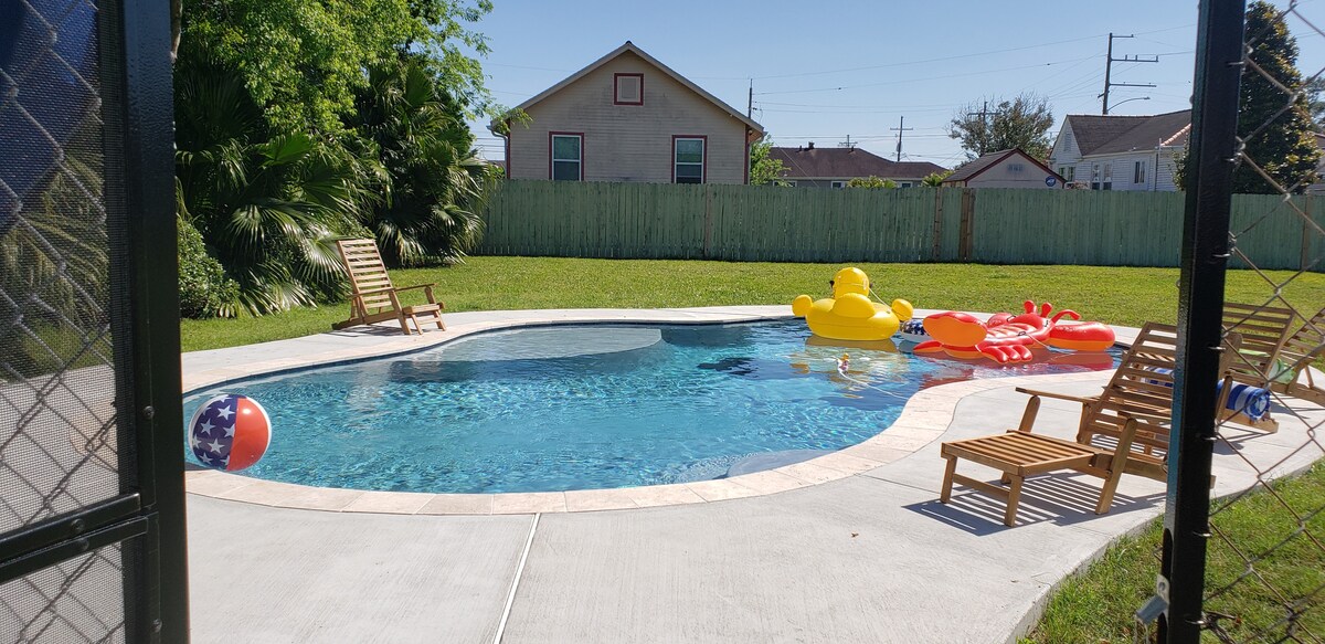 Ainmnithe mar “Best in New Orleans Airbnb” le Condé Nast Traveler, Business Insider, agus irisí Time Out, sheas an teach stairiúil seo ar feadh breis agus céad bliain i measc sráideanna ciúine crainn i gcroílár Uptown lena sheantithe gnaíúla agus siopaí agus bialanna atá faoi úinéireacht áitiúil. Níl ach dhá bhloc ó St Charles Ave. agus Audubon Park, le hOllscoileanna Tulane agus Loyola, agus Magazine St. Cuirimid an saoire fhoirfe ar fáil - le linn snámha sáile agus paitió brící simléir!